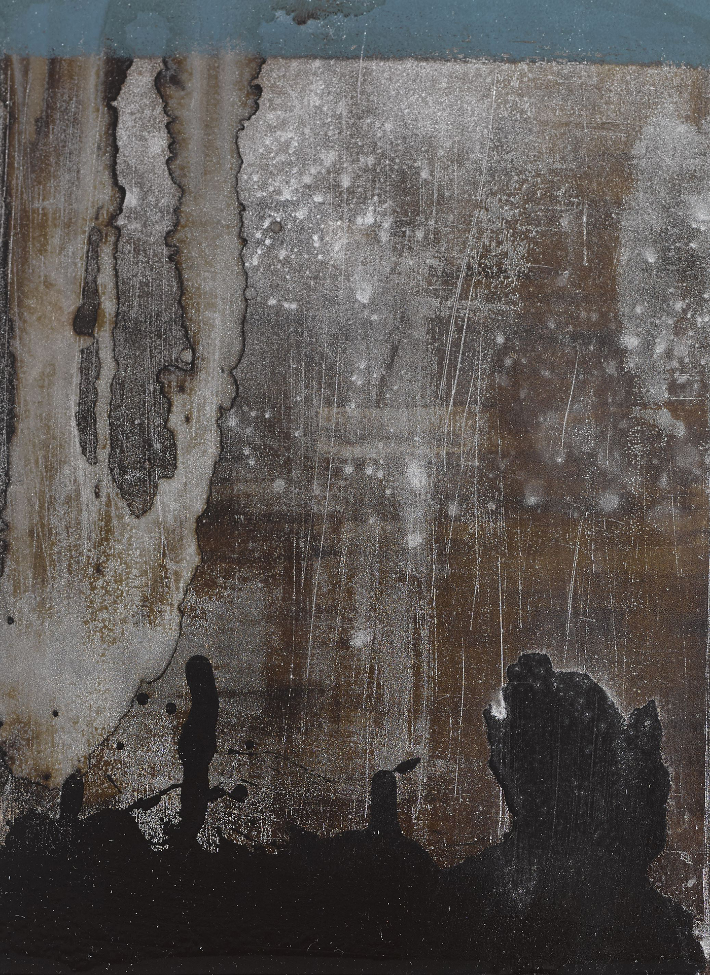 This work has developed from my interest in the techniques and processes of printmaking. The materiality and tools of the print studio play an important role in my work. Metal plates, lino and woodblock are surfaces typically used in printing. For these works, I have applied certain print techniques to used plates, which then retain the incidental traces of the materials, from the bitumen to the inking and wiping of plates. These surfaces are not intended to be printed from, instead, they exist as completed works in their own right.