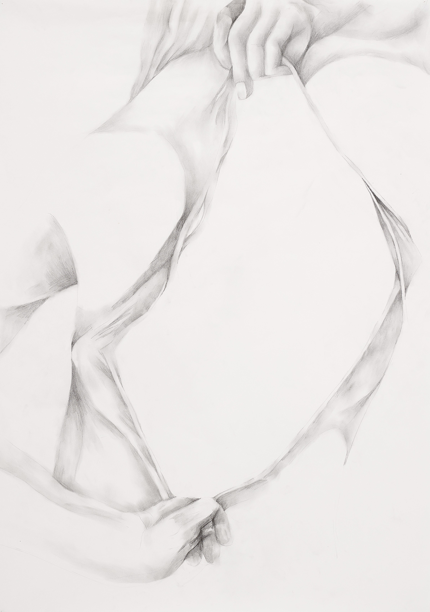 “Ambiguity” is a body of work which explores my own interpretations of how ambiguity or uncanniness occurs in the structure of the human body. “Ambiguity” is completed through the mediums of sculpture and drawing. These artworks are created with galvanised metal and balanced air-dried clay, and also a series of graphite pencil drawings framed with metal bars. In my practice, I force these two mediums together. Through these mediums, I attempt to explore the limitations of the body, how the body can be contorted, twisted or deformed to become something uncanny or inexact. My practice involves my own fascination with leaving traces of my movements or marks behind on the artworks showing its processes each medium went through, examples being my own fingerprints on the air-dried clay or the smudging of graphite on a drawing.