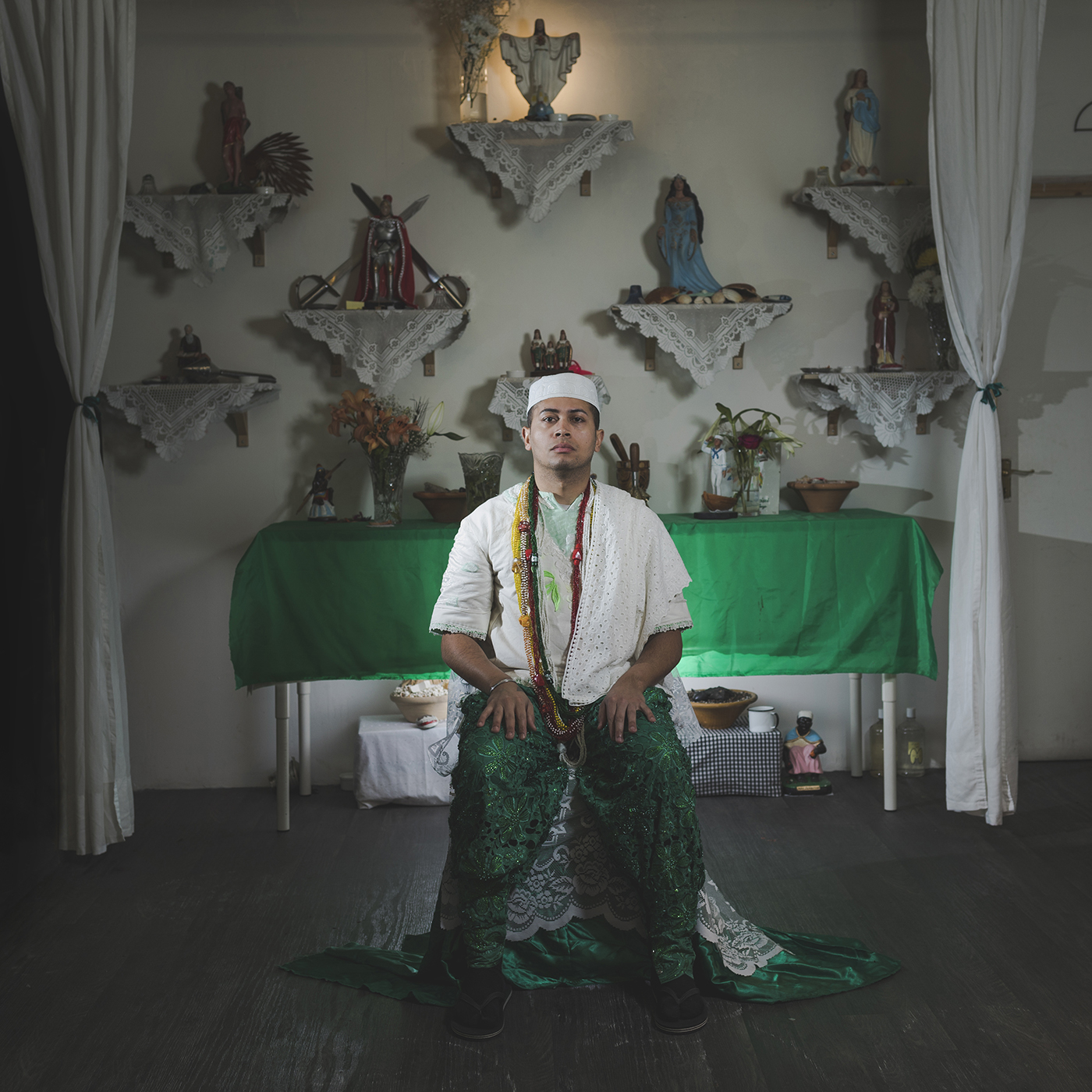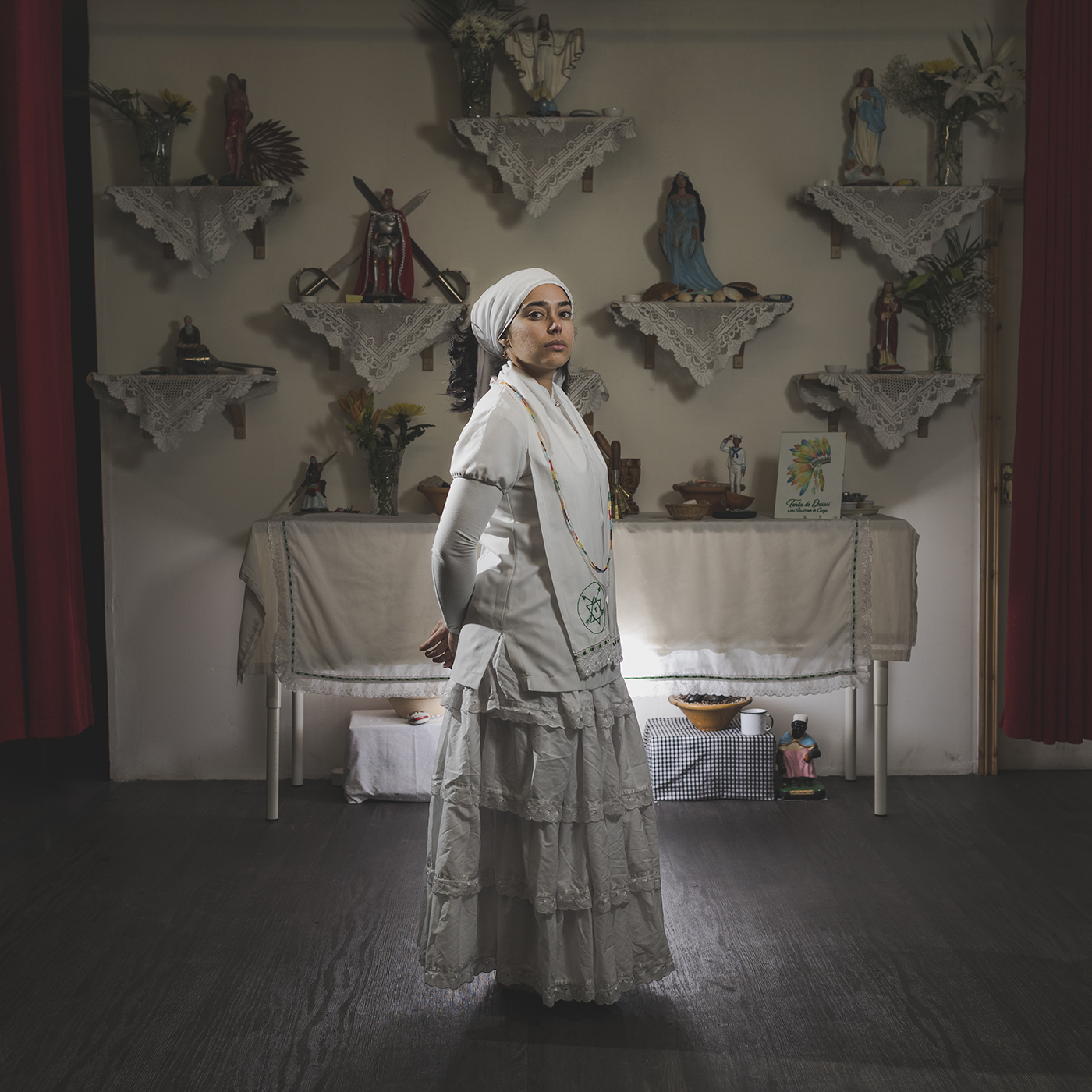 This mixed media work includes an extensive photo book which also explores the practices, believes and customs of Umbanda in Ireland. For more than six-months, I immersed myself within this community where I was able to learn more about this fascinating religion, which carries so many contrasting aspects of spirituality and faith. Umbanda attracts people from diverse multicultural backgrounds mixing Christianity with African traditions.