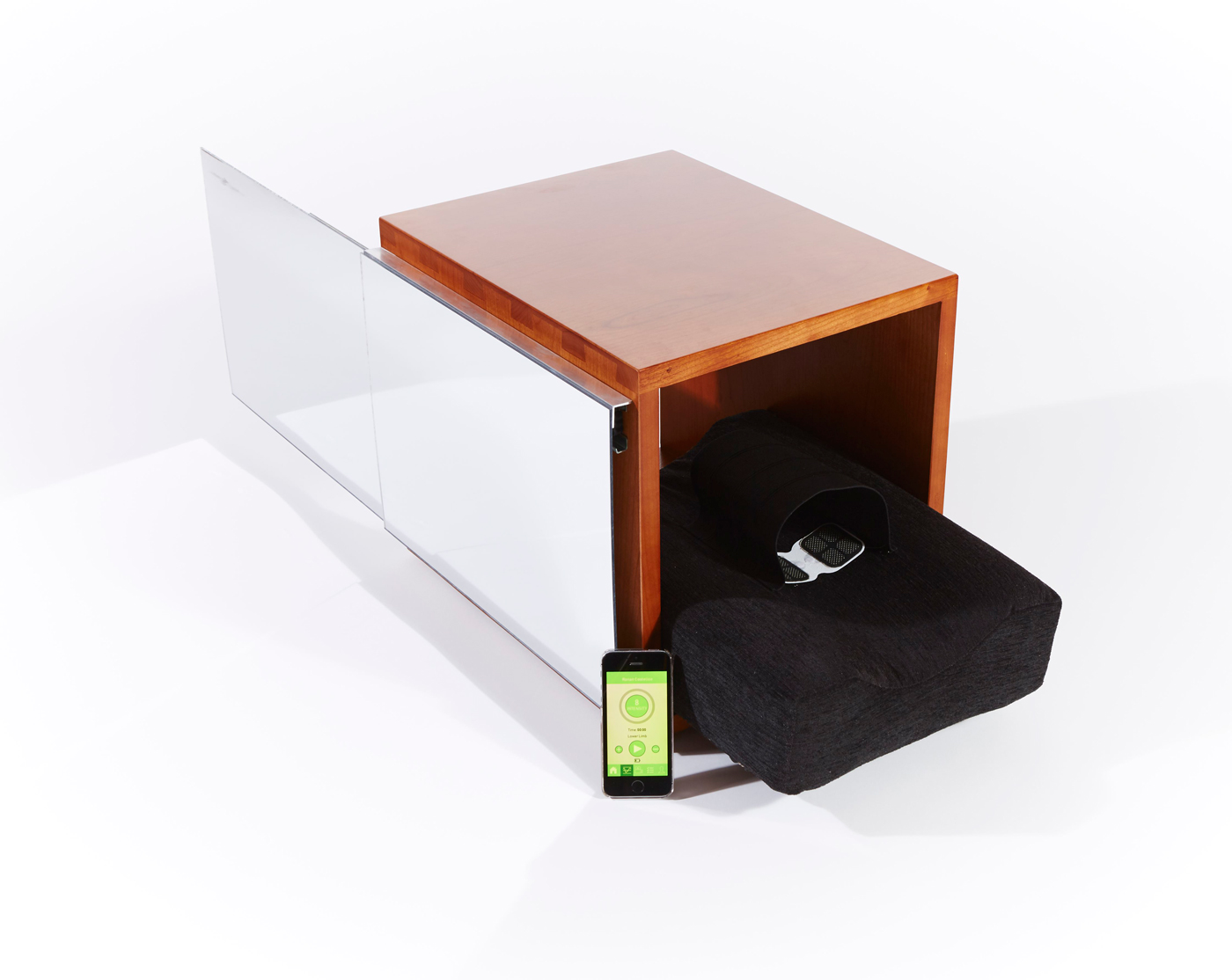 Phantom-Free uses a combination of Mirror Box Therapy and Transcutaneous Electrical Nerve Stimulation (TENS) to eliminate phantom limb pain in amputees. The mirror box is equipped with an extendable mirror to make it suitable for upper limb amputees as well as lower limb amputees. The product comes with a cushion insert that sits inside the mirror box, this is lined with a set of TENS Pads. An elasticated strap also lined with a set of TENS Pads is used to hold to residual limb on to the cushion. A TENS Unit is placed on the surface of the elasticated strap. The TENS Pads are controlled through an app that can change the intensity to suit the user. The app also contains video tutorials of sample exercises and an option to create a personalised routine to guide the individual step by step through the treatment.