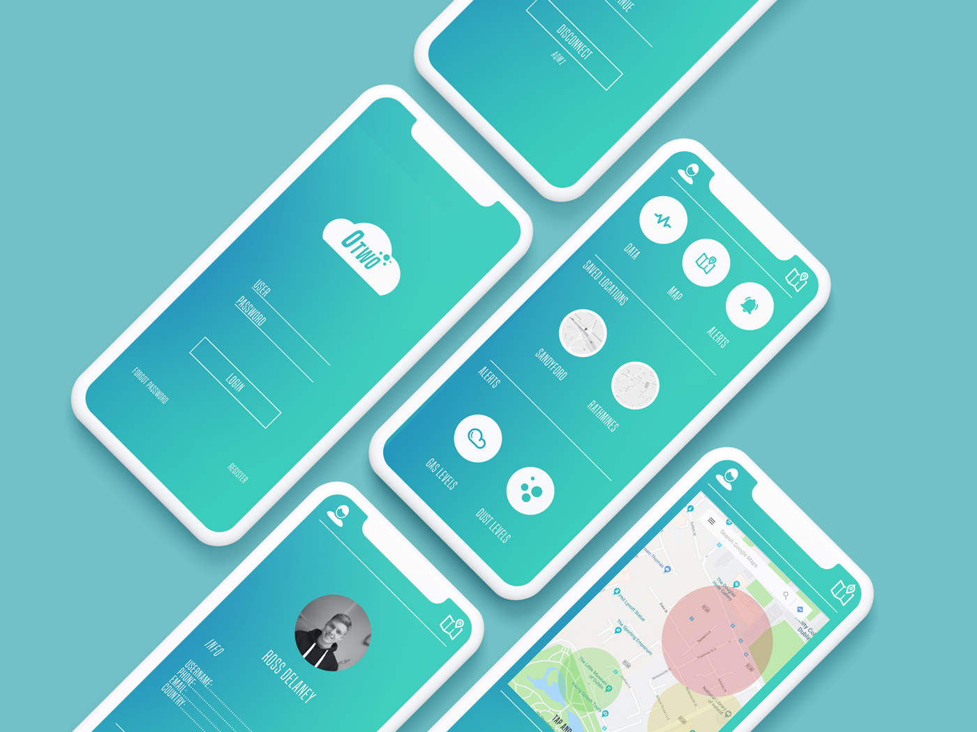 Otwo is a remote, set and forget device. Once installed it needs no further interaction bar cleaning and maintenance for it to work. Otwo reads and records the pollutants that are carried in the air we breathe. These pollutants range from dust particles to harmful gases. In addition, Otwo reads levels of humidity and temperature. Once Otwo has gathered this data, it uploads it seamlessly to the cloud using SigFox communications systems. Servers compile the data where it is beamed via cellular technology to the mobile phones of consumers subscribed to the service.