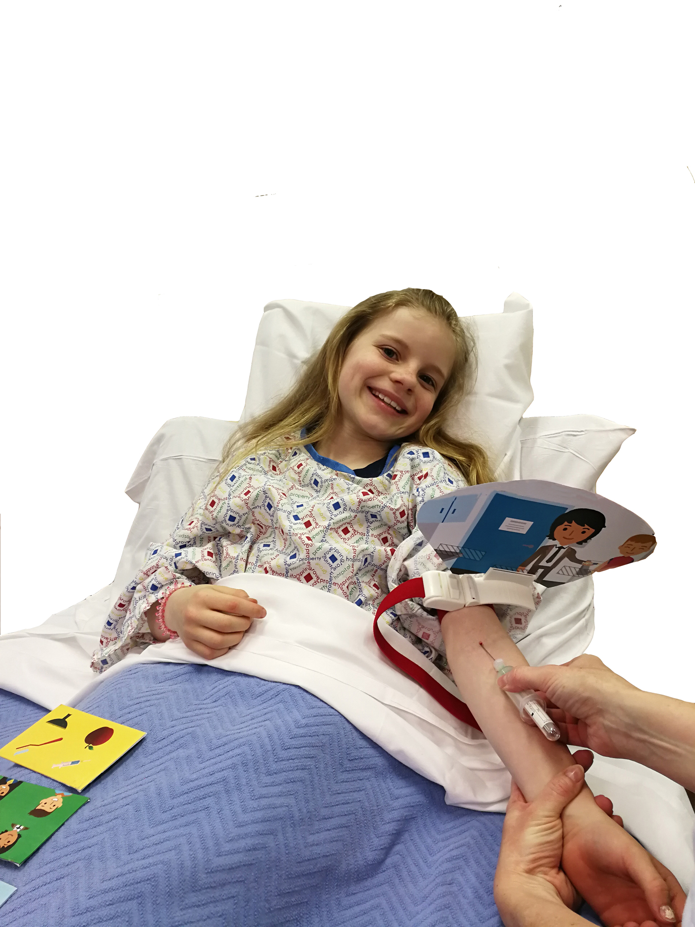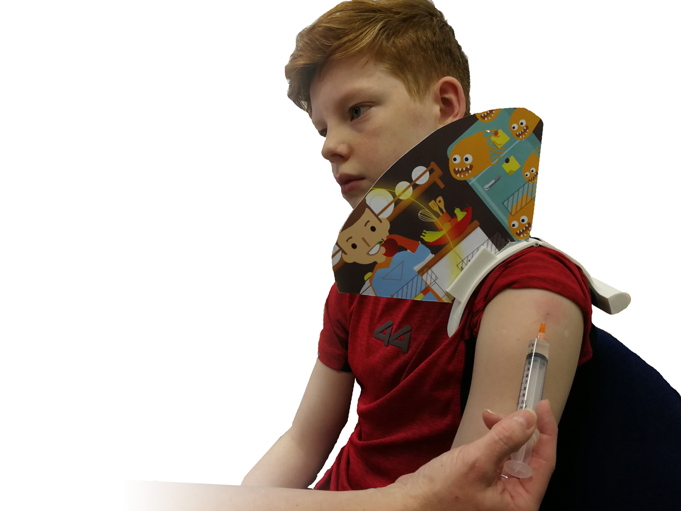 InvasoGuard is a toolkit used by the healthcare professional during invasive needle procedures to reduce anxiety and fear in children.