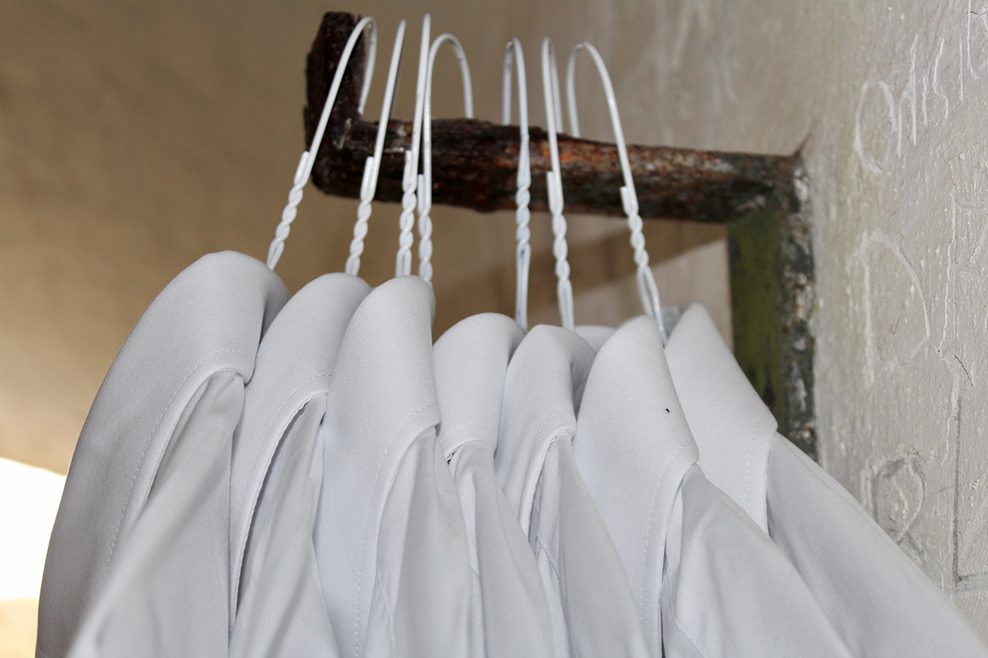 For the last year, I have been developing a series of research projects and performances in different abandoned military sites on Bere Island. These sites are potent reminders of our colonial history and the types of political regimes that have existed on this island. My work aims to subvert these historical and political sites to speak to more gendered forms of colonisation and regimentation. Paralleling the domestic and the military, the work draws out the repetitive nature of domestic chores with the drill and precision of military discipline. Attending to the function of dressage, I seek to highlight the subtle performativity of uniform in the classification of roles and sensibilities in society. The performance of gender, identity and in/equality is investigated through different contexts and media to address the physiological and psychological tensions between the bodies we inherit and the head spaces we inhabit.