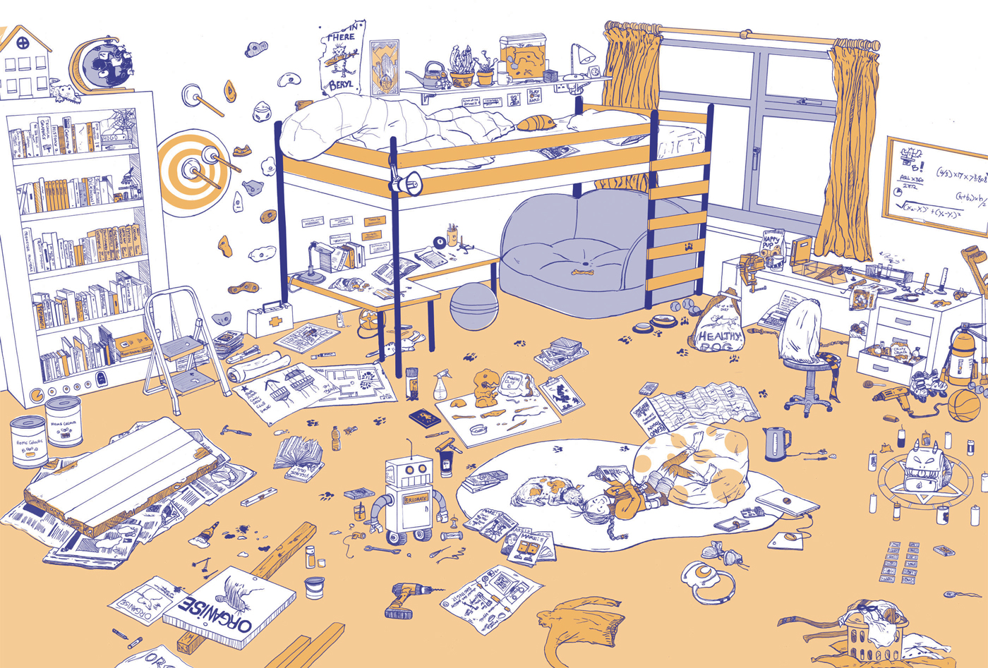 The objective of this brief was to redesign classic comic character Beryl the Peril to suit a new era and the Beano's new ethos of fun, imagination and inclusivity. Key to this is including more female characters in the current Beano lineup. In order to create strong and empowering representation, I have incorporated an independent and fighting spirit into the 'new' Beryl. Beryl readily questions the rules, breaking them, not out of spite, but due to how restrictive she finds them. Beryl's approach to rules and societal norms apply outside of herself too; at any given time she's ready to fight for others. In creating a fierce and free spirit in Beryl, my hope is that readers of all identities will learn independence and the importance of supporting one another, especially those in less favourable positions. This project includes a new design for Beryl, her room and an example of a pitched comic strip.