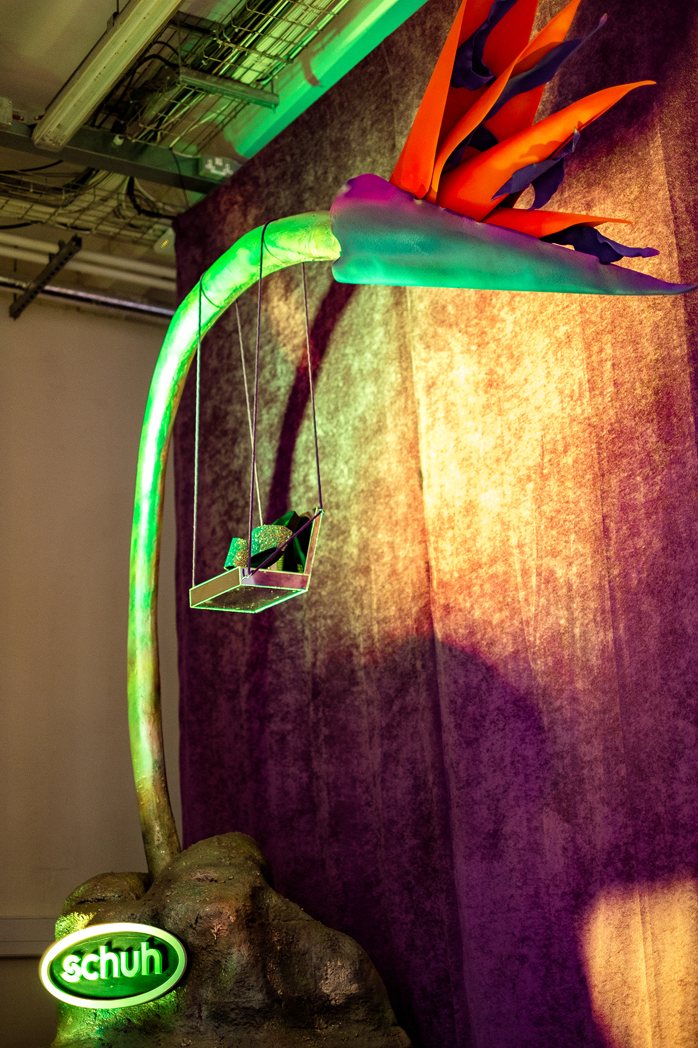 Following the WGSN Spring/Summer 2018 Psychotropical trend, which has a hyperreal quality & is exaggerated in comparison to reality, I set out to take a creative approach to devise an in-store display with an entertaining experience. The outcome to result in positive consumer engagement with my brand. I also took inspiration from nature but in an artificial form recycling some waste materials being my main aim along with appealing to my customers' senses.