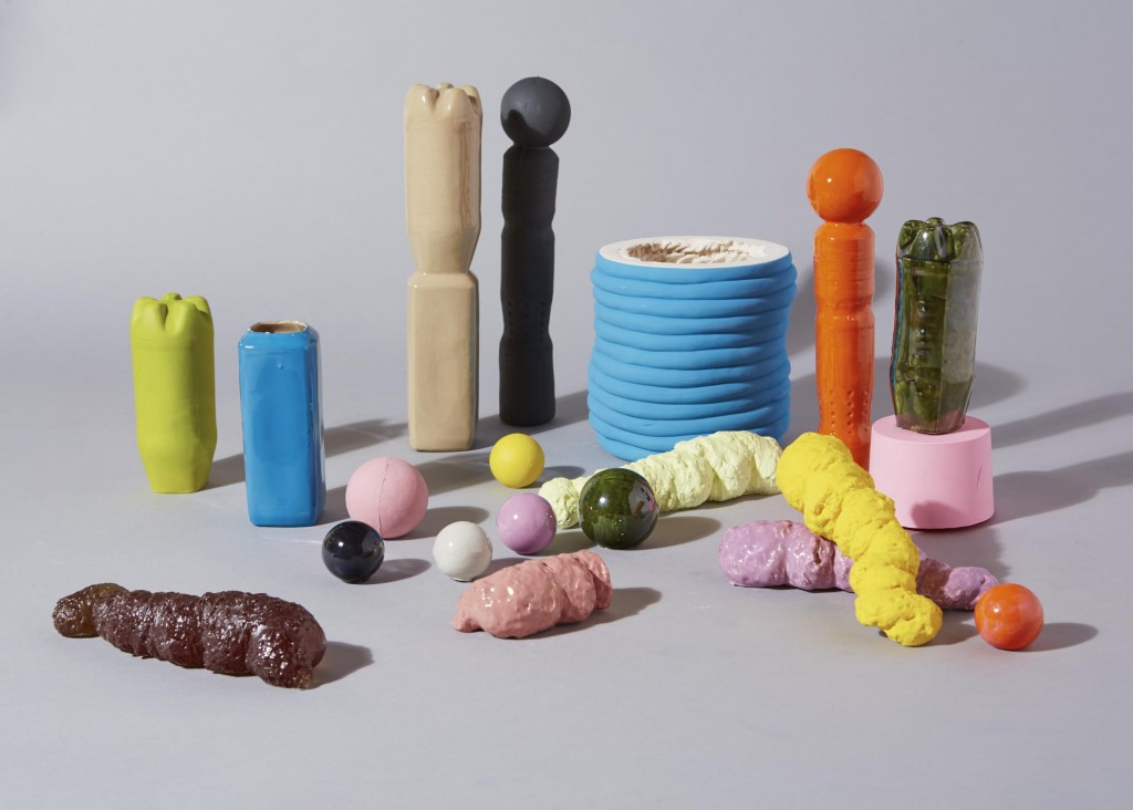 Merchandising displays of functionless things are presented through sculptural arrangements that stage tableaux. The methods of production and processes all inform the designs of the fabricated forms. The systems of construction include handcrafting, extruding, slab building, slip casting and moulding. The detritus that resulted from this practice resolves itself in small sculptural forms, the by-products of production.
