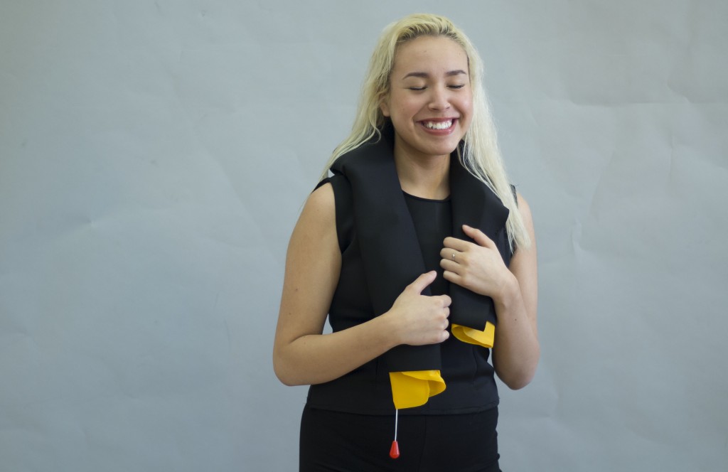My product is a buoyancy aid for open water swimmers. It includes an inflatable chamber attached to a neoprene suit. When the user finds themselves in danger they pull a string that pierces a cartridge of compressed CO2 into the chamber to provide 150N of buoyancy. By providing a dual function; safety and insulation, it gives the user a sense of security when swimming in areas with a lack of supervision without impacting the swimmers experience.
