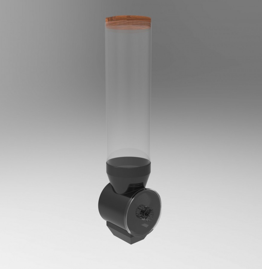This product is a new dry food dispensing system that will be integrated into commercial supermarkets to eliminate the use of unnecessary plastic packaging. The product will consist of two parts; a gravity dispenser and an eco-friendly alternative to store the dispensed food. This is carried out by providing a reusable cotton bag. The redesign of the dispensing system changes how consumers interact with the dispenser, their view of purchasing dispensed food and how it is presented as a system in the store.