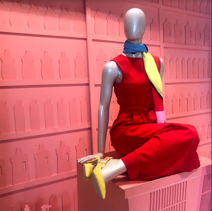 The purpose of this display is to showcase the beautiful brands that are now available at Dunnes Stores and to highlight that the store is not just ‘always better value’ but is now branching out into luxury brands. I dressed each mannequin in the Lennon Courtney SS range in store at the moment because the bold colour and clashing prints are perfectly on point with the branding. The cleaning products are a play on some of Dunnes best known products. I wanted to incorporate these everyday products and glamorise them to sync in with the luxurious brands, this combination is where my inspiration came from.