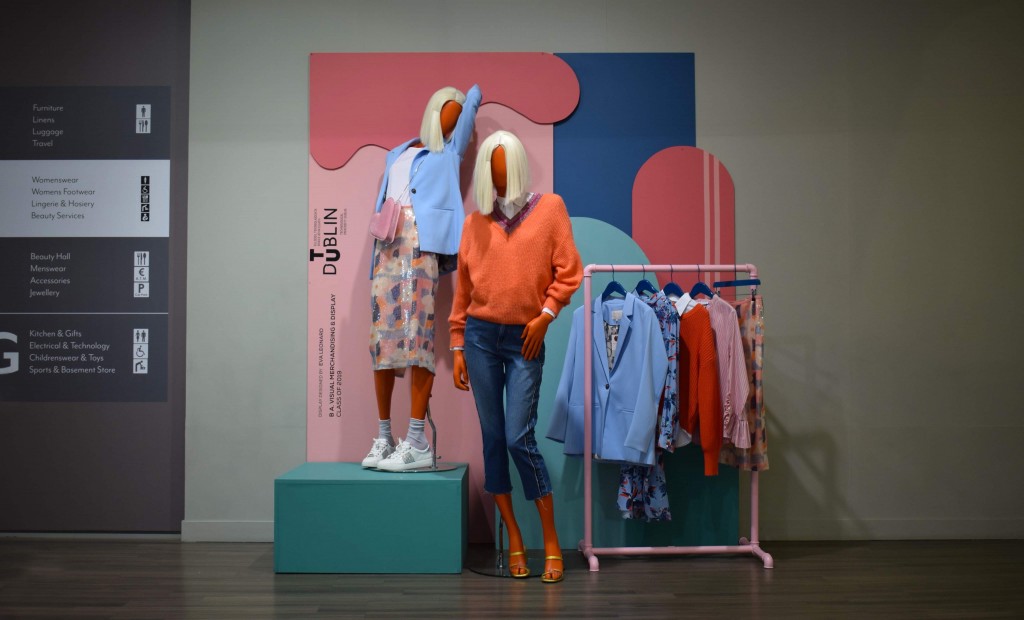 My major project for Arnotts was based on the concept of the ‘Lifestyle Curators’ theme. I chose the fashion element and was given the freedom to design a display which had to contain flat-lays and layering of boards, as this was the theme throughout Arnotts at this time. Our colour palette was based on a combination of bold colours. I focused on layering a number of curved shapes in these colours to add a current, playful and contemporary feel to my display. Once my desired structure was established through this design, I was then able to focus on the styling to complete my overall vision.