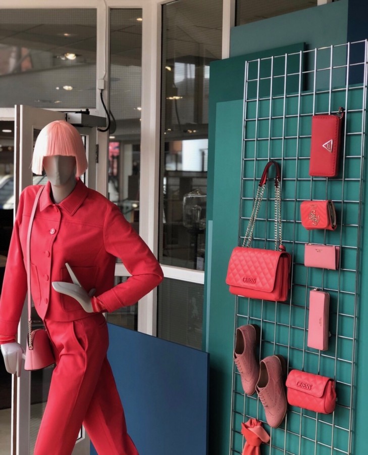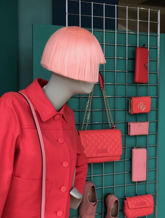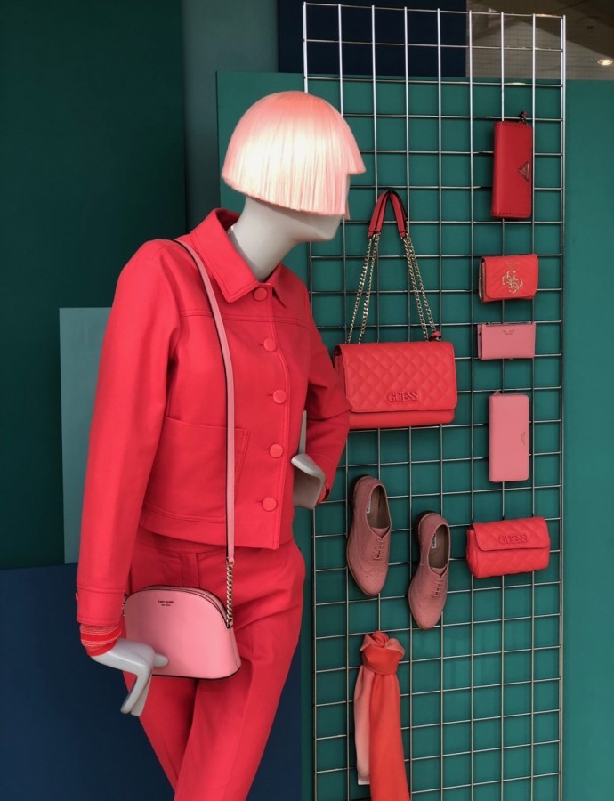 I cut MDF boards into different sizes and painted the boards by hand. I then decided to dress the mannequin and do a flat lay of products in the Pantone colour of the year ‘Living Coral’ to give my display an element of contrast. This made the products really stand out. Taking this display from Arnotts and recreating it to exhibit meant I had to expand my display and add certain new aspects to it.