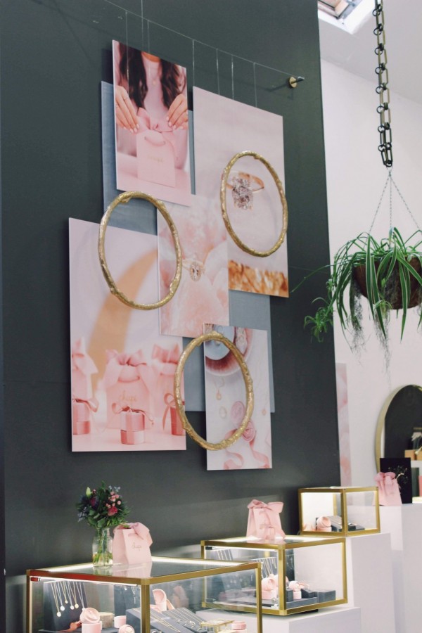 This display is based around imagery and textures unique to the brand it was created for. The Irish jewellery designer, Chupi, forms natural textures from solid gold, and I wanted to reflect that on a larger scale. Combining my approach to grouping and asymmetry with Chupi’s recognisable product and colour-palette, the collage of large-scale imagery and recreations of the brand’s signature hawthorn twig ring allows the viewer to experience the jewellery in a new way. WGSN S/S’19 Trends, In-Touch and Common Ground, influenced my use of colour and use of the ring’s organic textures.