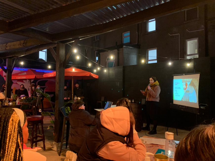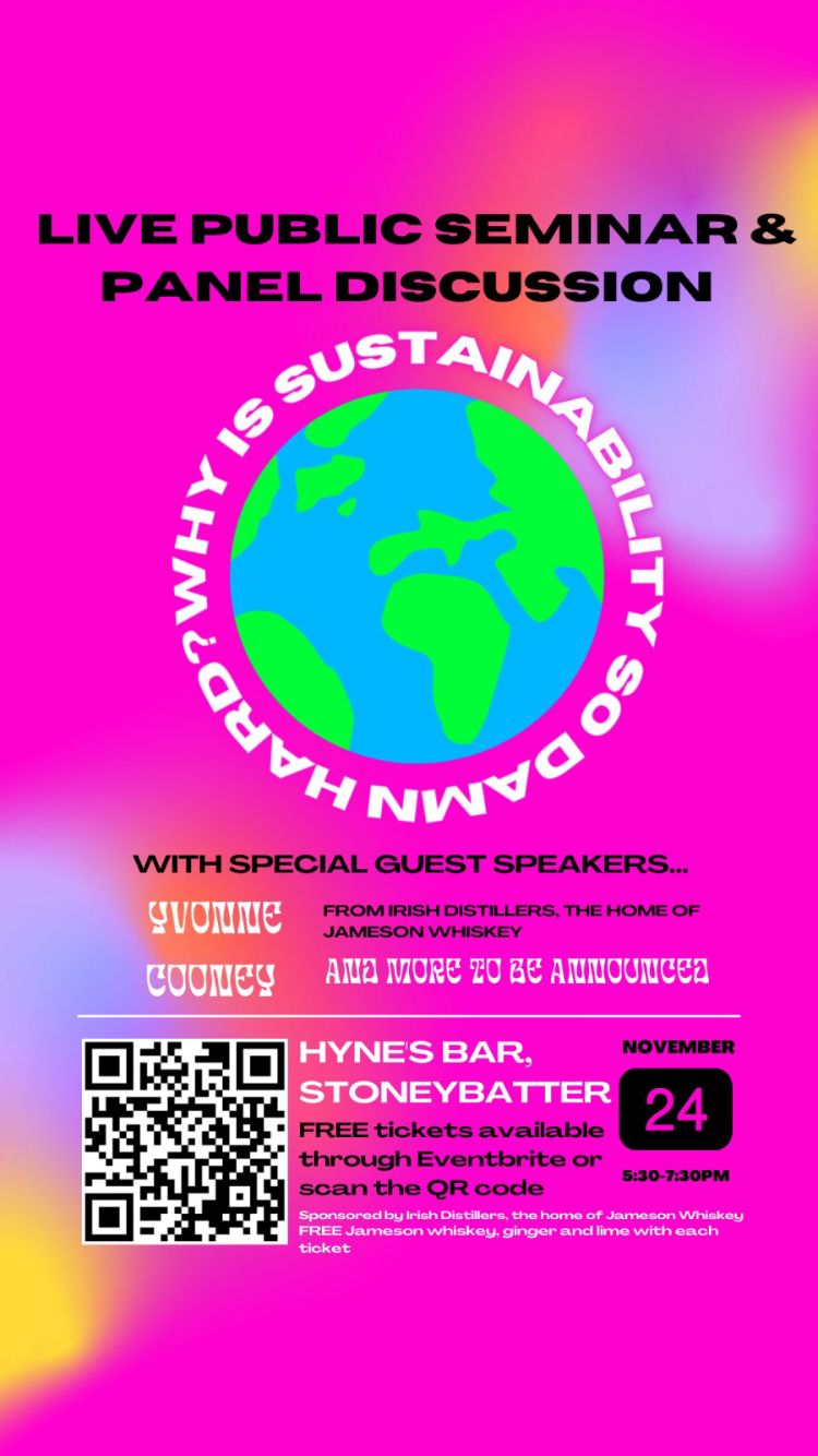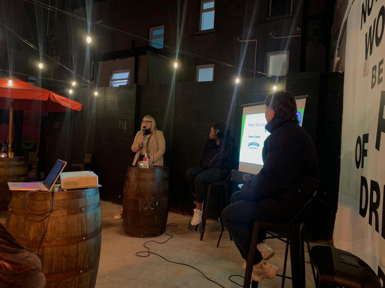The penultimate activity of the event was a panel discussion with two industry professionals. Yvonne Cooney from Jameson and Christie Kandiwa from KRA Renewables were interviewed by one of the students, and generously imparted their wisdom on the theme of the night. The guest speakers provided insight on the sustainable practices of their organisations and demonstrated the importance of long-term planning and strategy to achieve creative industry sustainability goals.