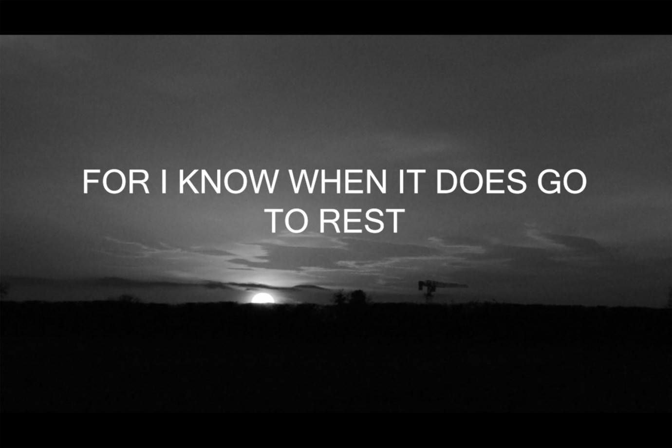 This collection of videos, titled ‘the Sun and the Crane’, centres around a figure entering an environment, moving through it, before coming to rest upon an elevated surface, observing his landscape and resting, and then ultimately leaving. The footage works in a cyclic nature, focusing on the recurring imagery of this area while the figure journeys through it. Seven segments are played back-to-back, with marginal cuts between each, to represent the transition from one day to another, giving the impression of a stereotypical week and the contents by which, each day typically possesses. The footage is displayed in black and white to reflect the thematic devices presented within each segment, while text is also utilised, being placed upon specific footage, directly referencing and providing a commentary to the relatively silent visual, only accompanied by the raw audio of the footage.