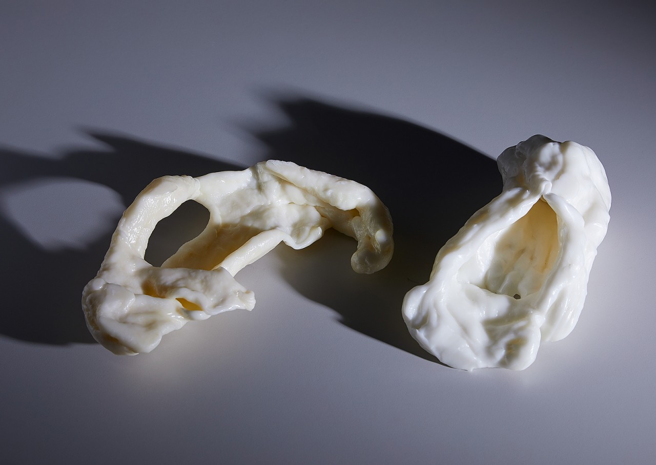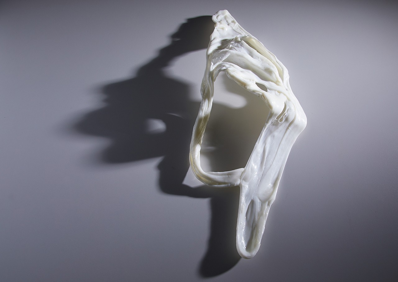This installation is on one level about mediation; the screen adding a layer to how the body is read and functioning as a mechanism for speaking about the fissuring that occurs between the translation of the self and the external world. The sculptural forms are organic and white. As the videos seek to destabilise an understanding of what is “natural” to understanding one another, the forms speak the syntax of the organic, the human but are ultimately unintelligible. The forms dialogue with the videos speaking about the antithetical nature of intelligibility; the interplay between the perceived material and immaterial body and the body as a site of knowledge production.