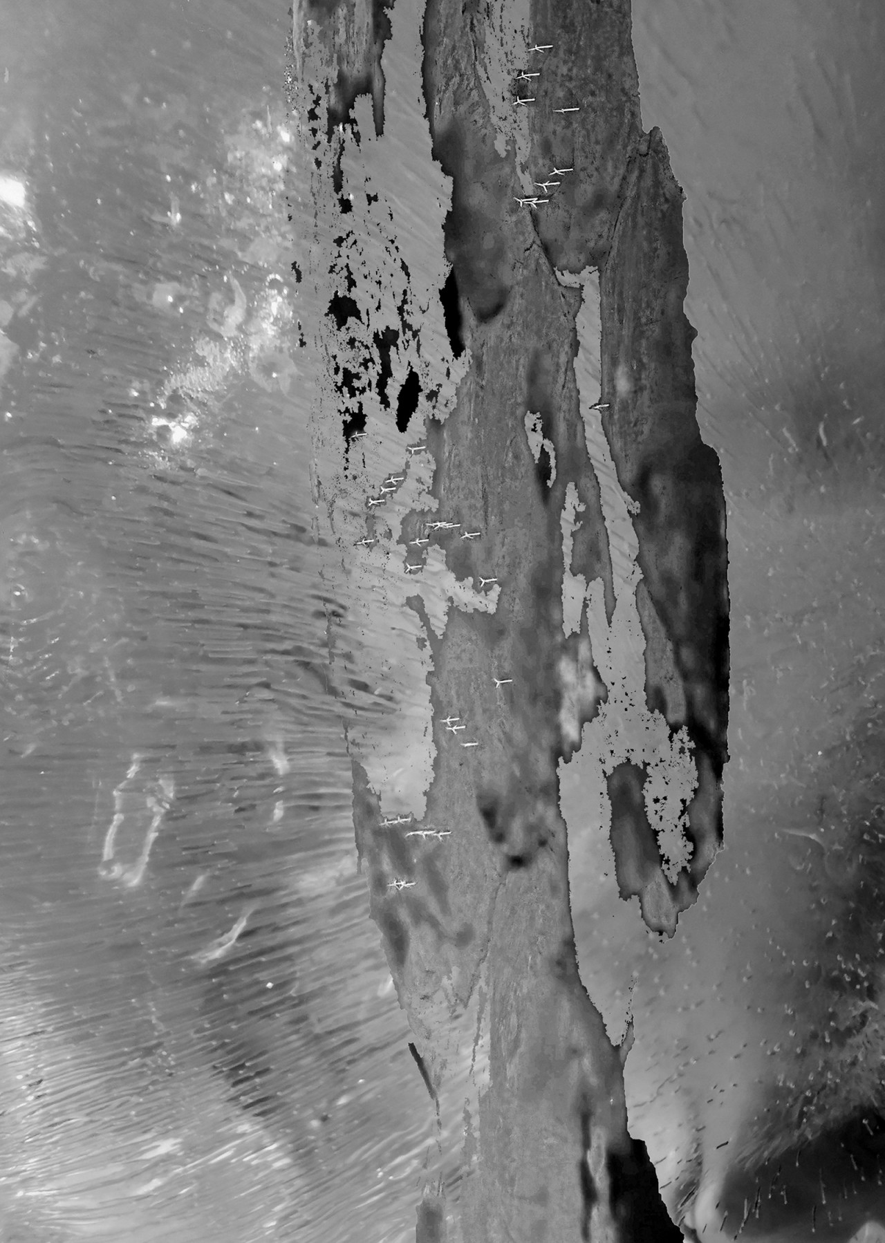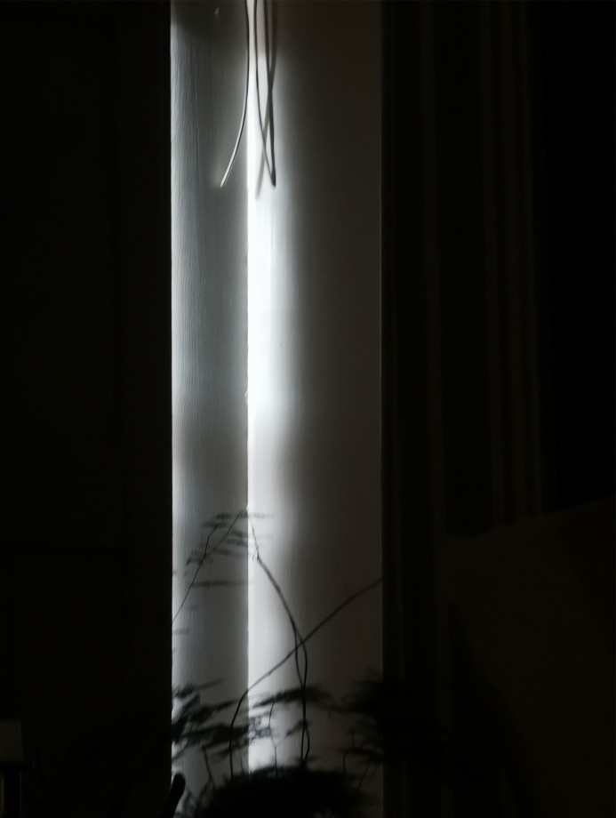 The work consists of a series of images generated through three main processes – photography, carving, and drawing. The first section of photography documents the detailing of interior worlds, creating abstracted imagery from domestic trace. Sections of crumpled bed linen become mountain ranges, sunlight cast through a rain soaked skylight create dappled ghostly apparitions, a scratched and dented skirting board generates a geometric composition.