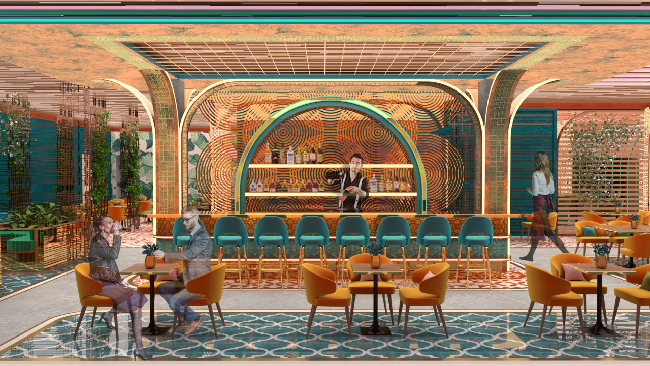 The facilities operated at Cosmo, named after the term cosmopolitan, includes cookery classes that explore foods of the world, immersive dining which offers 4D eating experiences, library and café spaces, a workroom for people wanting peace and quiet, a bar and lounge, a function room for parties or events, a marketplace canteen that provides stalls of food tasters and drink, a two-floor art exhibition showcasing art from all over the globe, an art class and a rooftop bar.