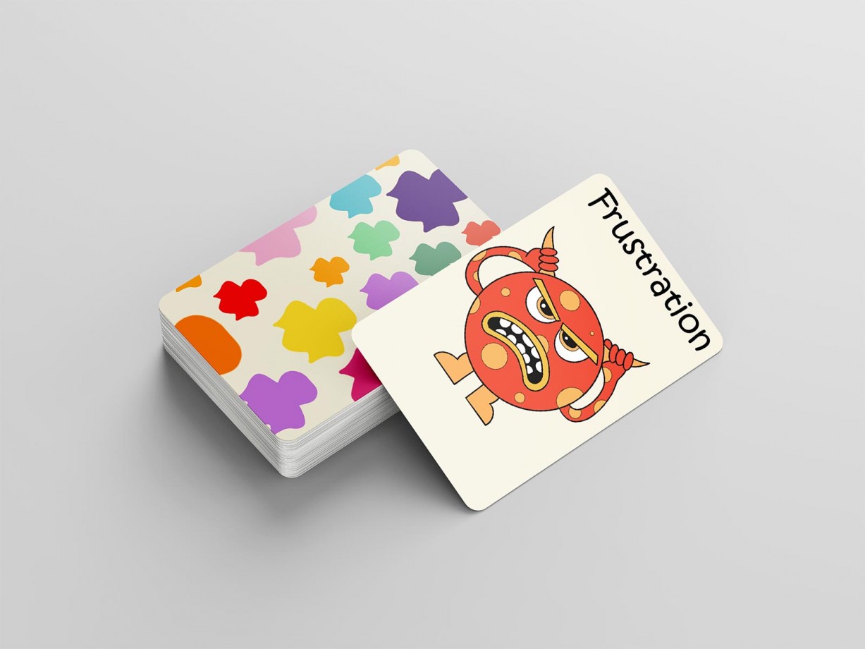 The cards: The cards are used for selection. Each card represents an emotion the children will use the cards when guessing the emotion as well as when they are portraying the emotion.