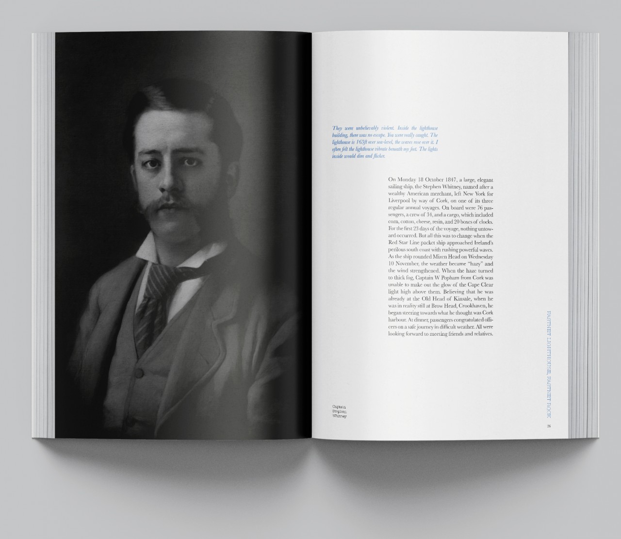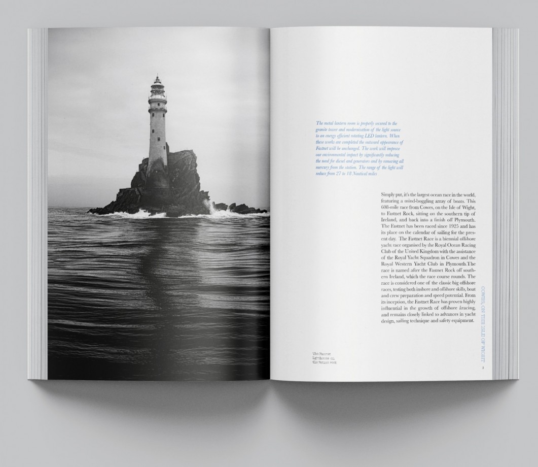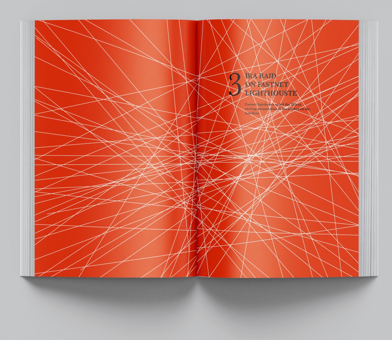 This publication is in response to the ‘’Lighthouses of the world’’ brief for the ISTD competition. This project aims to make a publication to commemorate the beautiful and powerful Fastnet lighthouse located on the remote Fastnet Rock in County Cork. Ciara added her personal interest into the project and incorporated sailing into the publication. It includes incredibly rich culture and the historical events that Fastnet Lighthouse has seen through its years. The publication is in size Super Octavo and draws inspiration from sailing expeditions laid out on maps by using typographic dots to represent the journeys in each chapter. The bright orange colour that is used in the page breaks is associated with colours used in most sailing equipment as it has striking qualities.