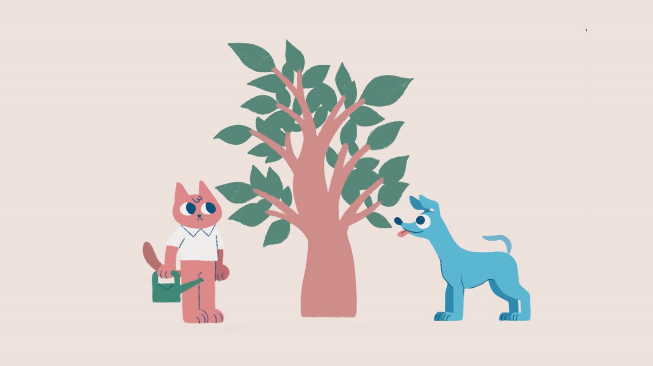 This project is an animated short film that displays the importance of ‘Act Together’. How do we deal with people who have different opinions and viewpoints? How can we co-operate with the people that disagree with you? This animation answers that, one way to get anythingsolved in terms of racism, social injustice, global warming or even pandemic is by understanding each other. Communicate and build relationships with the people that do not agree with you and understand their humanity and where they come from. Eunyoung used anthropomorphism as a tool to carry this message by introducing a dog and a cat character. Famous pair that is commonly used in the media and novels to signify ‘they do not get along’. The cat represents an intellectual person while the dog represents asimple folk. They do not get along at first but then they start to realize that they are not what they judged to be and become friends. This project aimed to create easily understandable visual language that can be digested smoothly by the audience. Though the subjects that are being discussed in the audio are not something to be taken lightly but Eunyoung believed that for people to start talking about social or environmental issues, it is important to not scare people off. Hence why the animation almost looks children friendly and uses symbols, colors, and shape language that people can easily recognize. It also used frame by frame animation technique that brings out the friendliness of the visual tone.
