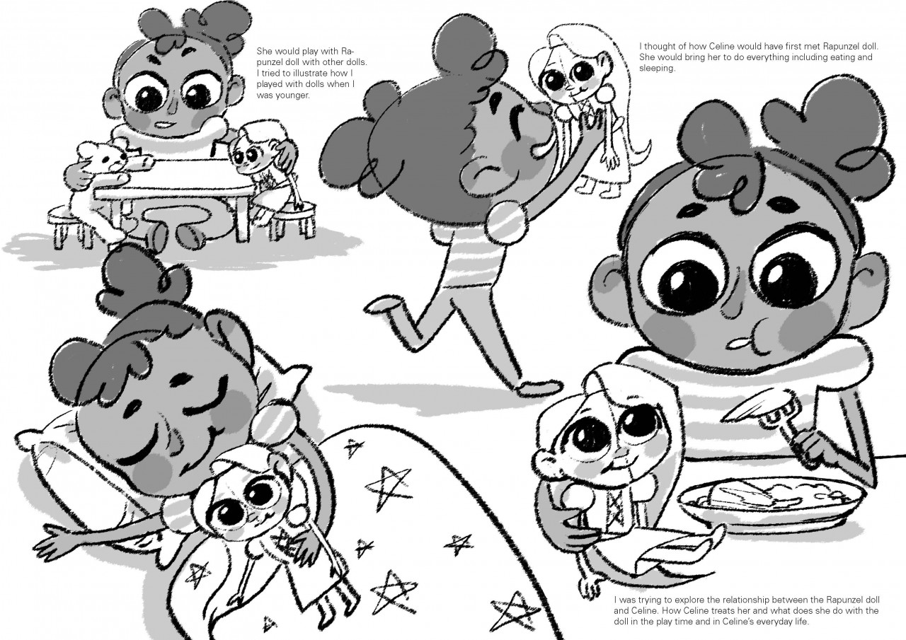 This 1minute animatic was created to enter for Disney brief in the DNAD New Blood award. The target audience was children aged 3-5. It aimed to create a short story that spreads positivity and encourages a creative mind that are filled with imagination. To do this project correctly Eunyoung researched into the trends that are popular on video platforms like YouTube, Netflix, and Disneyplus by the target age. Then analyzed their behaviors and how they reacted to those videos with physical toys and how they played with them. She noticed there was huge connection between the children’s content industry and toys and wanted to bring this element to the storytelling. She was inspired from her childhood and how she played with her dolls. Creating the dolls backstory, giving them personality and how she made them come alive. Even though the target audience of this project is age 3-5, despite it being children’s content she still needed to create something that their parents / guardians can approve. Unlike teenagers, little kids cannot look up videos by themselves and need help from their parents / guardians. This is something that was also noted in the presentation included in the brief. It needs to have a story that adults can approve which means it needs to have a happy ending with some lessons for kids.The story is about a girl called Celine struggling at drawing something on her sketchbook. Then Rapunzel doll comes alive and takes her on adventure. Celine sees Rapunzel’s beautiful paintings and gets inspired. Rapunzel reminds Celine to be brave and to not be afraid of failure because you can always try again.