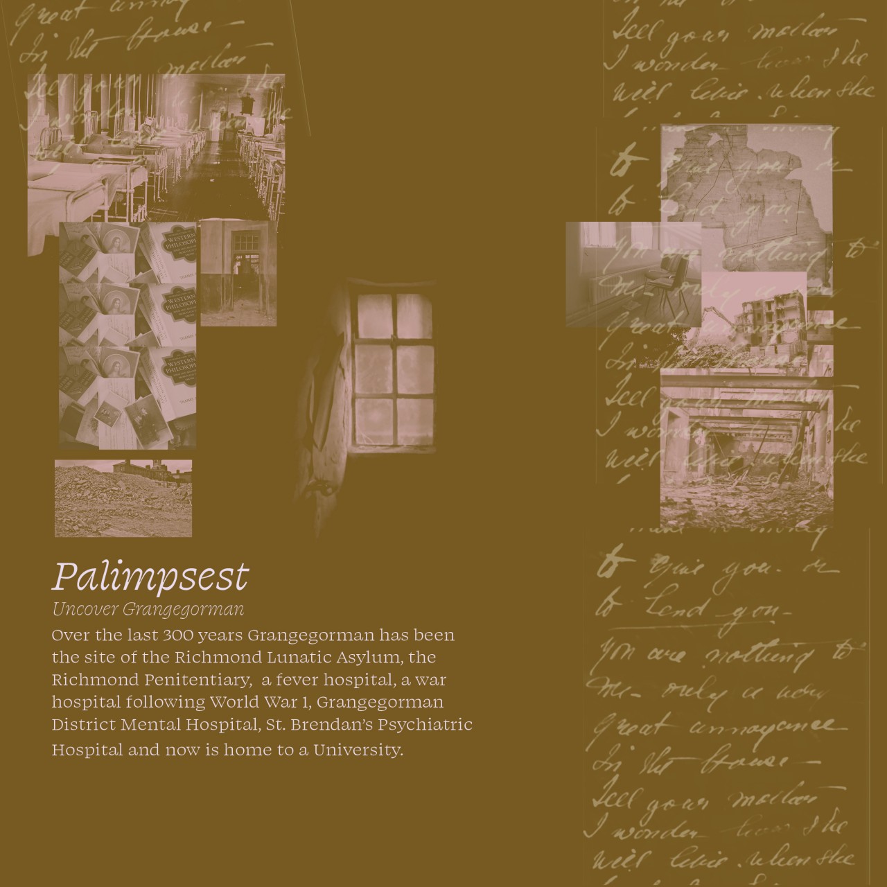 The aim of this project is to provide an illustrative history of the Grangegorman site. Over the last few hundred years Grangegorman has been home to a women’s prison, a number of lunatic asylums, a cholera hospital as well as a University. This project combines found images, text and audio to tell interesting stories about the history of the location. It aims to show connections between people, places and the traces they leave behind within the context of the institutions.al