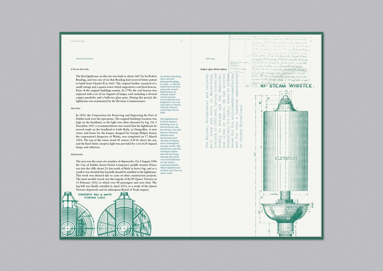 The aim of this project is to create a publication that serves as a local history of the Baily Lighthouse. Rather than just providing an historical overview it aims to weave, within the historical facts, diverse and personal accounts of life within and around the Baily. This book is aimed at people interested in local history It aims to provide personal perspectives on a famous local landmark. Rather that solely focusing on facts it aims to unearth and reveal diverse stories. The book could potentially be part of a series that focuses on lesser known aspects of Irish history, landmarks and events, that tells these diverse and personal accounts within a general history.