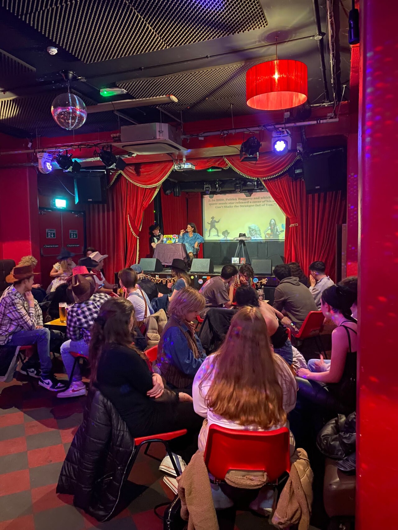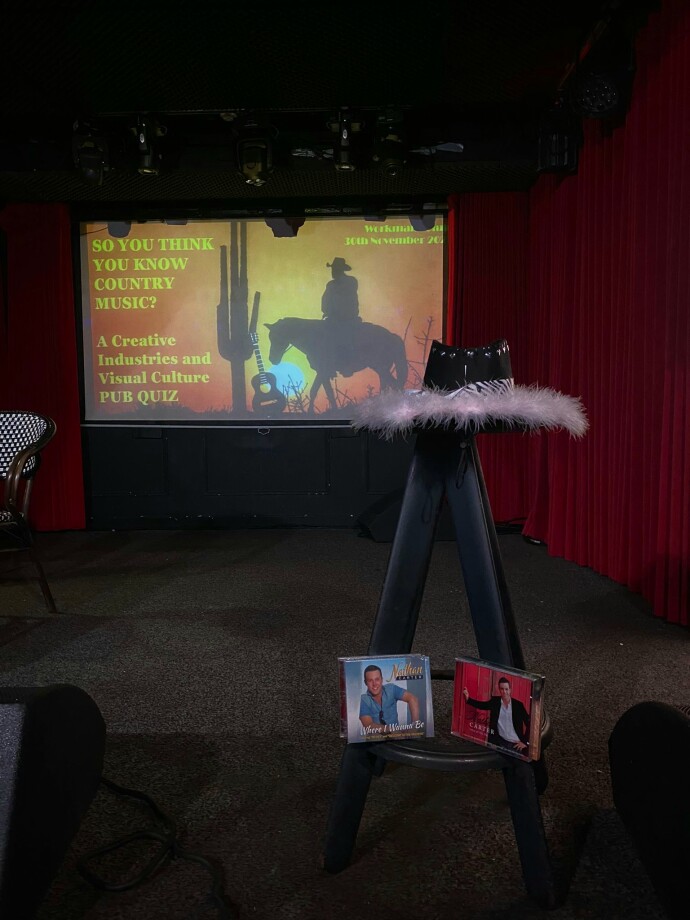 Following the record-breaking concert series of a certain famous country musician in September 2022, the final year CIViC students were inspired to host a pub quiz called So you think you know country music? The aim of the quiz was to educate the attendees on different facets of country western music in an engaging, fun and interactive way. Participants were encouraged to dress up and prizes were awarded to the highest scoring and best dressed groups. The research presented caused attendees to assess their own perceptions and ideas of country western music and consider the future of the genre.