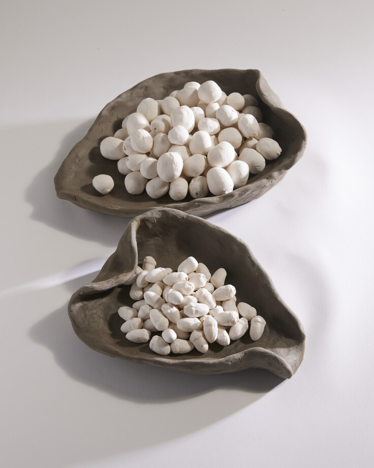 Grammar of loss is an installation incorporating video, naturally dyed/ painted fabric and both clay and porcelain sculptures. This instillation responds to language and lost languages that relate specifically to plant life. A long list of words describing nature have been removed from early education dictionaries and replaced by technologically based vocabulary. Grammar of loss quietly contests this identifiable anthropocentrism. By replicating and replacing these ‘lost plants’ their value and presence as essential beings become apparent, requiring attention and importance. This can be identified in the porcelain sculptures entitled Viable microcosms in both their fragility and multitude.