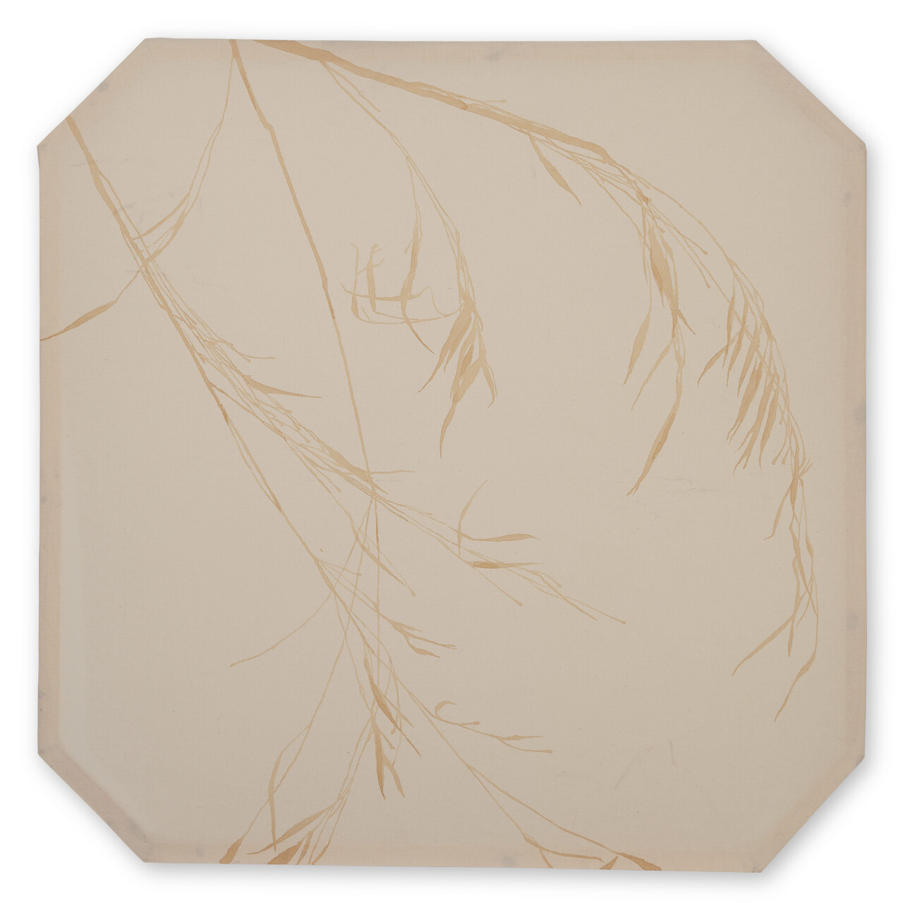 Time is an important element of the project that can be identified throughout Grammar of loss. The dye used in the fabric pieces entitled Fermented entities has been made by fermenting lichens, that are a fungus and an algae in a stable symbiotic partnership. Imagery from fermented entities is mirrored in the video piece Kinetic paralyses, an unedited, one take video piece depicting organically moving plant life on an overhead projector.