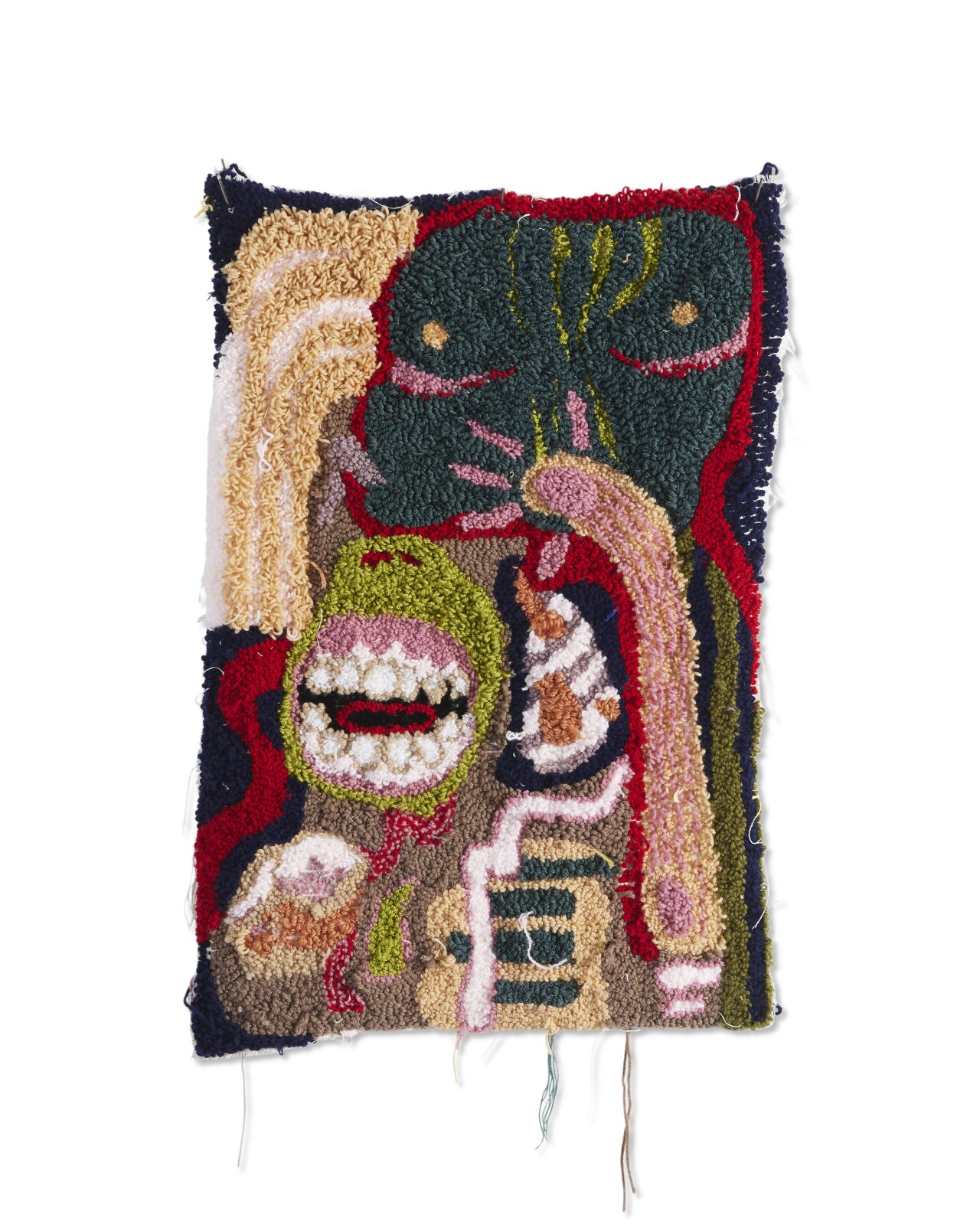 AntiBodies is a journey that navigates the delicate subjects within the queer experience. The installation is made up of woven and tufted pictorial textile works and sculptures that use steel armatures.