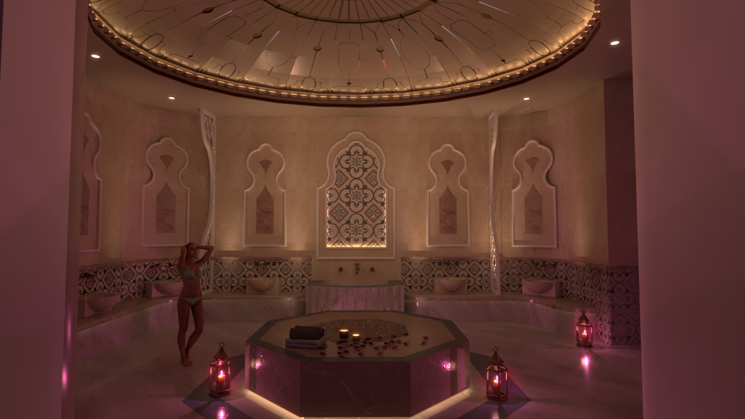 This thesis project is a proposal to redesign The Reflector building on Hanover Quay from an apartment and office building to a North African inspired spa and wellbeing hotel, providing a space where people can escape daily city stress life stress and relax their mind and body. The primary function of the building is to serve as a place of mental and physical relaxation and a serene experience. I also aim to have the spa hotel Muslim friendly to cater basic needs for Muslim customers such as a praying room. The building will offer spa facilities and a hammam, a beauty salon, gym and yoga facilities including a tennis court and indoor swimming pools with a jacuzzi.