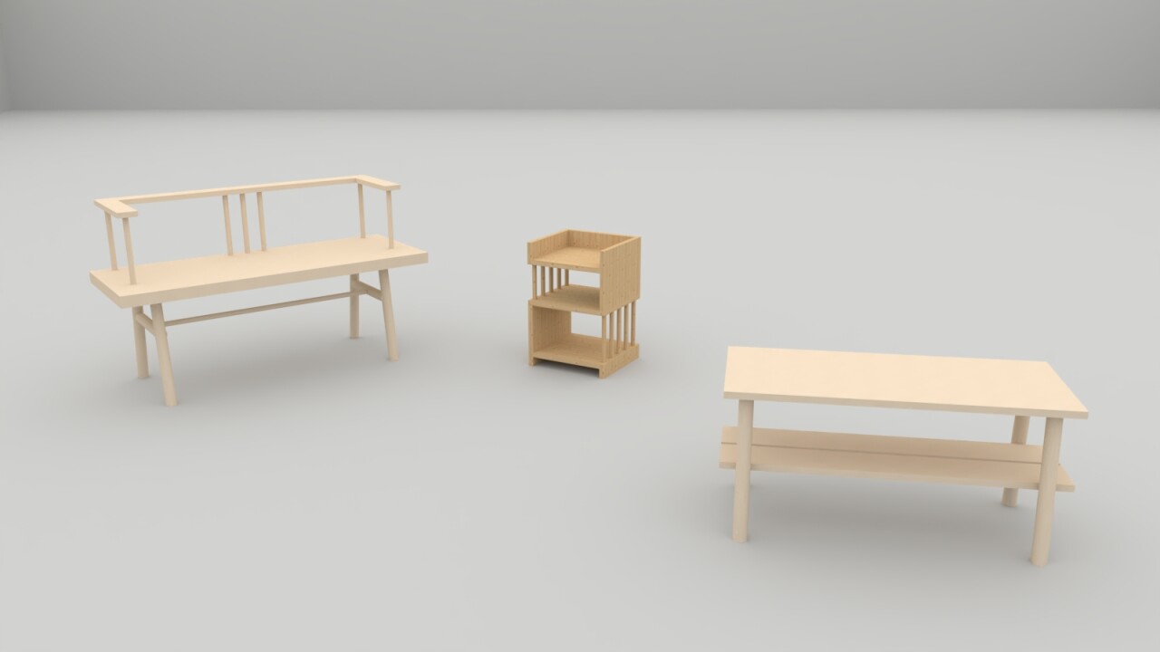 This project focuses on the principles of traditional techniques and natural joineries as they are followed throughout the structure of the collection: bench, coffee table, and side table. The use of traditional techniques and natural joinery are reliable in terms of longevity and durability if assembled correctly. The main joinery used to fabricate the objects is the wedged mortise and tenon that is fitted to give strength and durability that holds the pieces together along with the use of dowels that represents the strength of spindles in vernacular furniture which can easily be replaced in the furniture without the need of using modern mechanisms. The purpose is to interpret the traditional construction of woodworking to allow a connection between the designer and the materials which in this case understanding to respect the wood while correctly following the grains to ensure a stable and neat outcome.