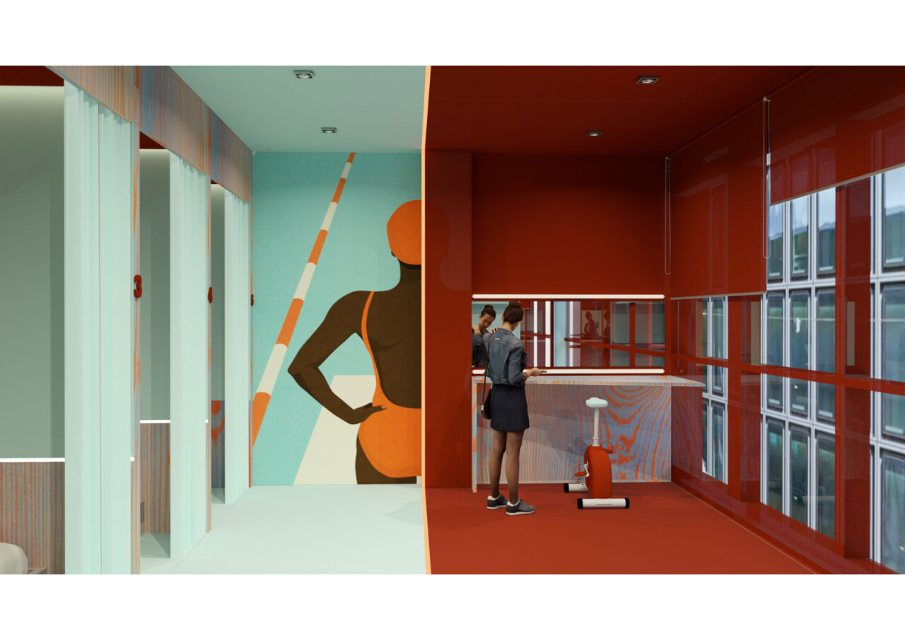 The design concept derived from the patterns created when a crew of rowers are moving in sync. The streamline nature of rowing allows for unique patterns and linear forms to appear. The linear interiors and the bold colour palette create a vibrant and exciting environment for travellers and guests to enjoy.