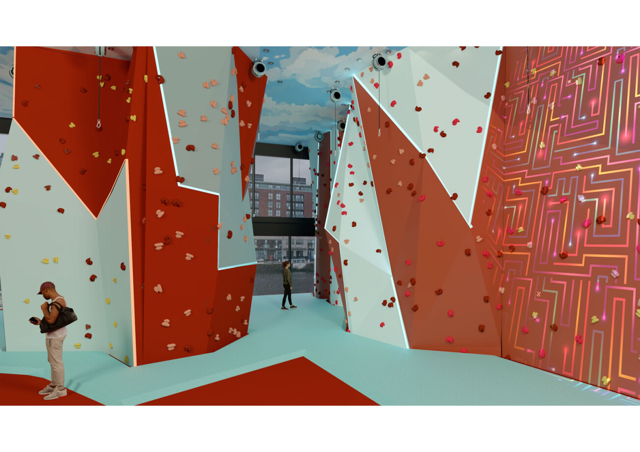 Bringing activity back into the city centre, this project aims to create a fun and active hostel and hub for adventurous travellers. 33 Sir Rogerson’s Quay is located on the river Liffey, and only a stone’s throw away from Grand Canal Dock, it is a perfect location for a variety of waters sport activities available in Dublin. Offering a two-story rock-climbing wall with views of the waterfront, along with activity zones dotted throughout the building such as pool and table tennis tables, the guests will never be short on things to do.