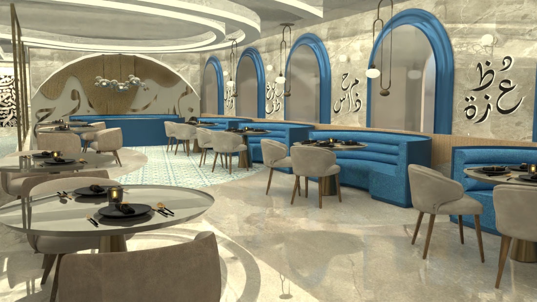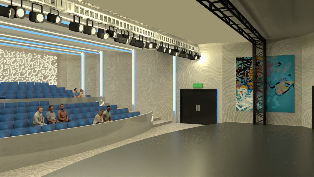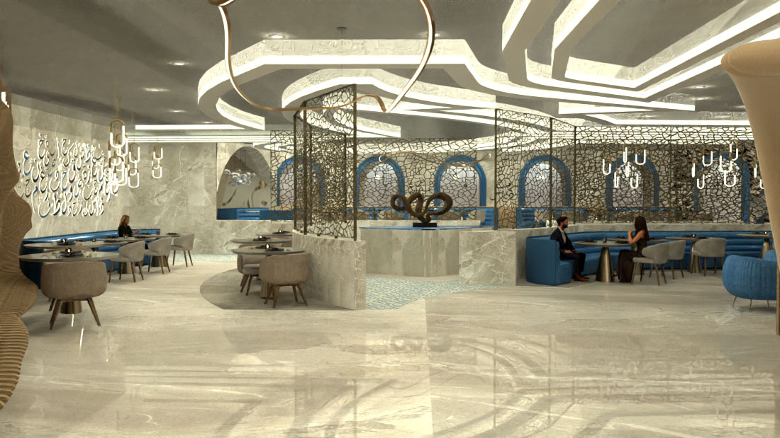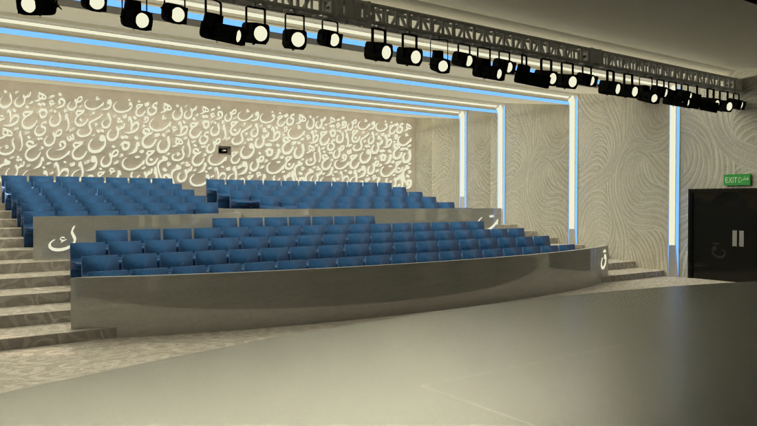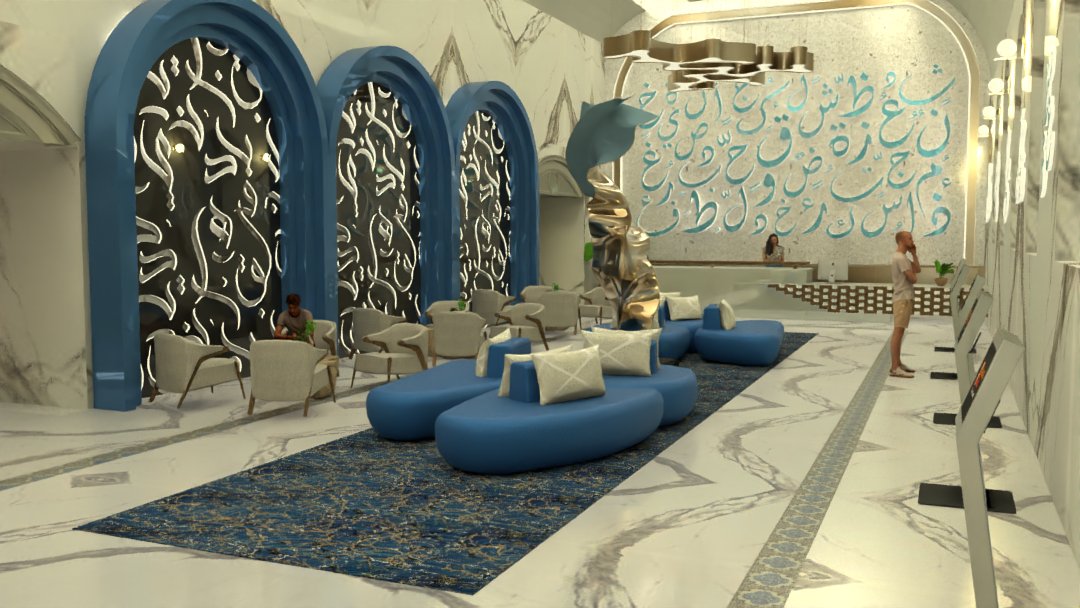 The goal is to create an event centre that embraces the beauty of middle eastern culture while maintaining a modern aesthetic. Arabesque decoration is often a very prominent element in most significant works and plays a large part in the interior decoration and architecture. Arabic calligraphy which is part of arabesque decoration is the artistic practice of handwriting and calligraphy based on the Arabic alphabet. The building's architecture already ties to the arabesque. The forms, windows, and curvature of the decorative stone façade all link to the arabesque decoration style.