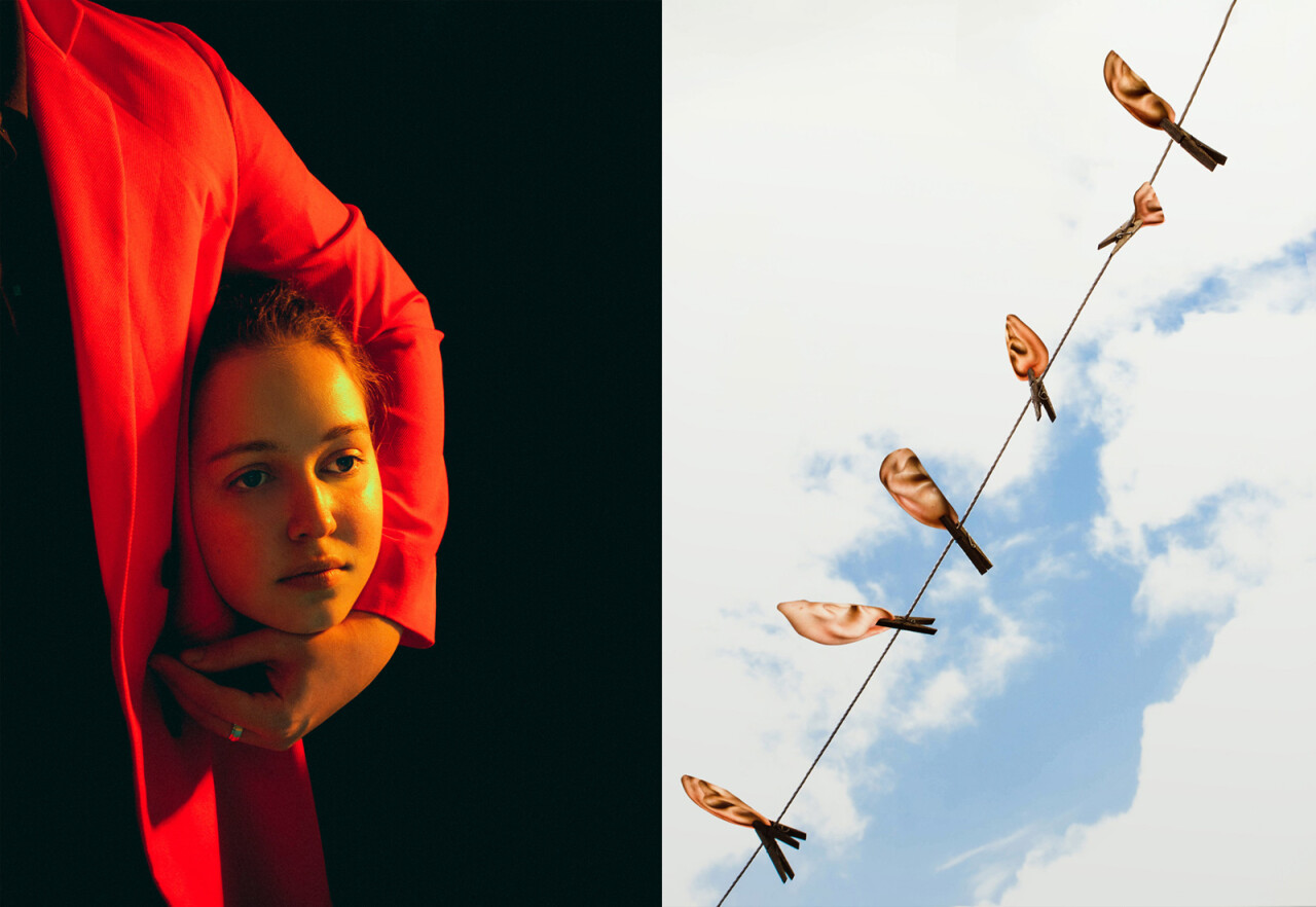 The project Молва (Molva) explores the interrelation between photography and linguistics by visualising a list of catchphrases from the Russian-speaking community I grew up in. Depending on the desired context, these word combinations may be unique or not have an equivalent in other cultures. Based on such intricacies of communication and translation, one can determine the cultural background of an individual. This project involves people from different countries who are united by their ability to speak and understand the Russian language, respectively. My participants can feel the atmosphere and appreciate the nuances of these forms of communication. How people express themselves verbally can throw the specificity of nationality into relief when attempting to illustrate metaphors that are unique to certain cultures. Combining portraiture and still life compositions, and supplemented with elements of photomontage, Молва (Molva) revels in the absurdity and the eloquence of language.