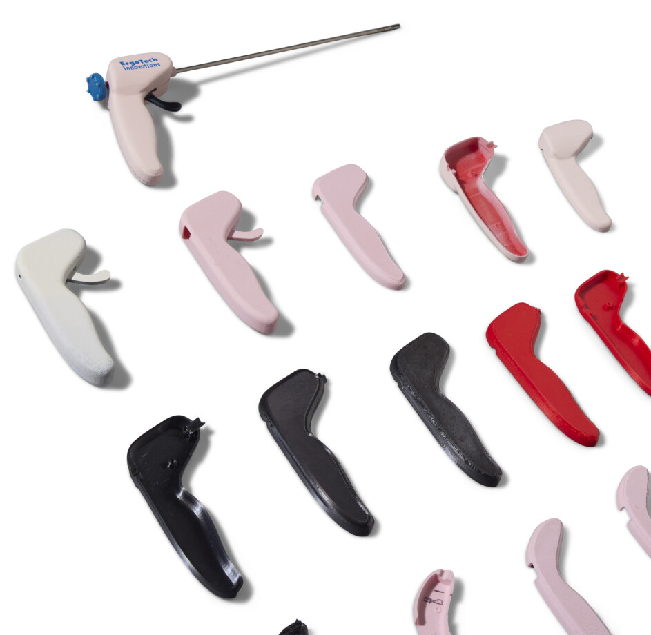 Laparoscopic instruments commonly injure surgeons who use them by causing excessive flexion and ulnar deviation of the wrist during tissue manipulation. Surgical tools that are not ergonomically designed can increase the risk of injury to the surgeon, such as repetitive stress injuries, strains, and sprains. ErgoTech is an innovative ergonomic redesign of the current laparoscopic tools that repositions the surgeon’s wrist into a more neutral position. The neutral position of the wrist reduces the overall stress and strain felt and can increase accuracy and precision of the surgeon. By changing how the user interacts with the basic controls, ErgoTech allows for a more comfortable experience while operating. Developing human factors such as improving comfort, reducing fatigue and injury for surgeons are critical and will impact positively on the effectivity of surgical training and will increase the overall professional operating life for surgeons.