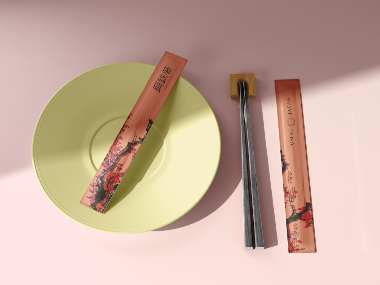 The design features a cardboard box with traditional Japanese drawings done in a bright and fun colour scheme to attract my target audience. The following image is a campaign that features a set of chopsticks, designed following the same design ideas. The chopsticks are steel and reusable and can ban be purchased separately from the sushi share boxes.