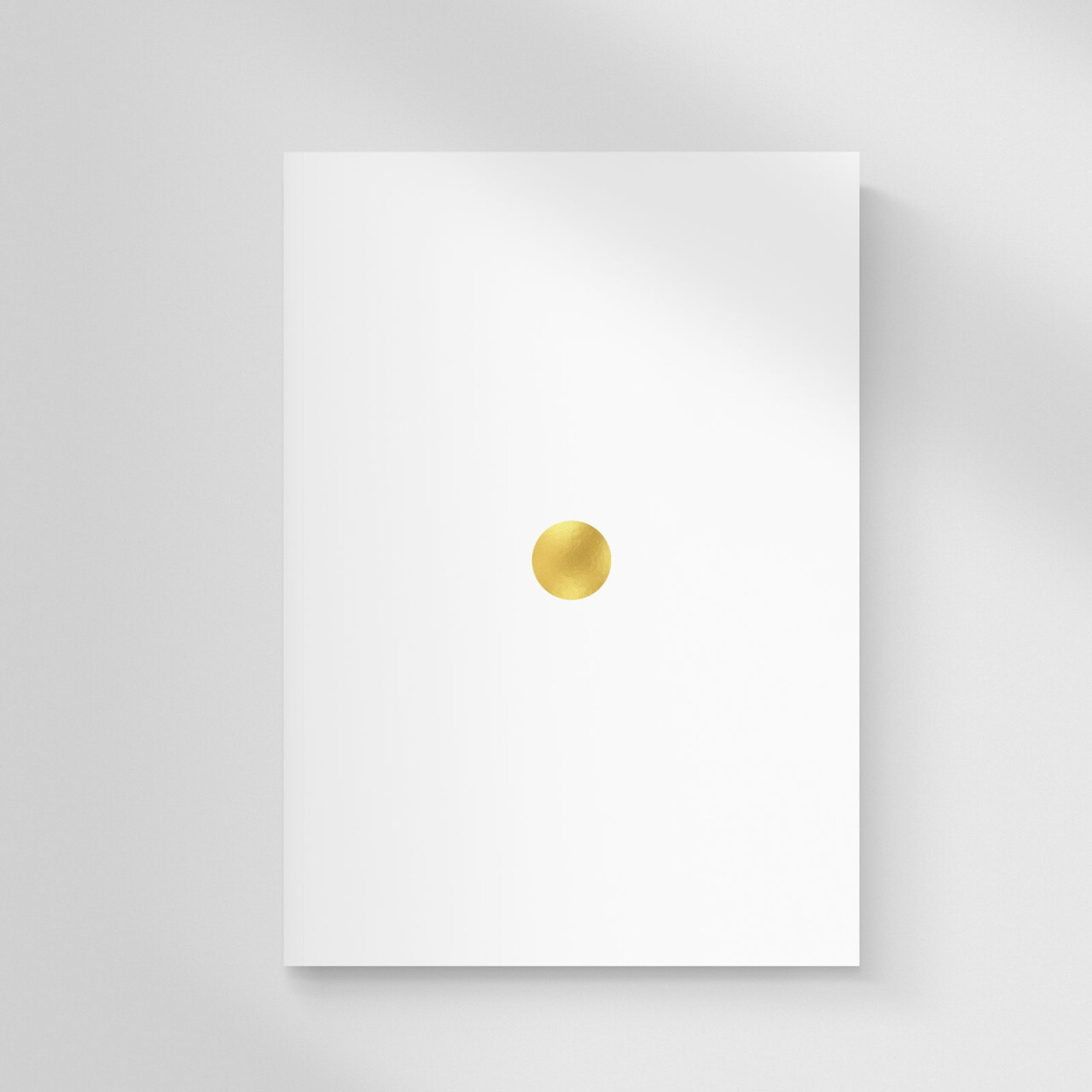 This publication is a laporello book about how stars have helped us understand our universe. This book is 104mm x 155mm, made using off-white, 90gsm paper with a yellow hue. The cover is a lightweight, white dust cover paper with a gold foil dot to represent a star. The book illustrated many star map diagrams from all over the world, each labelled and coloured navy-blue.