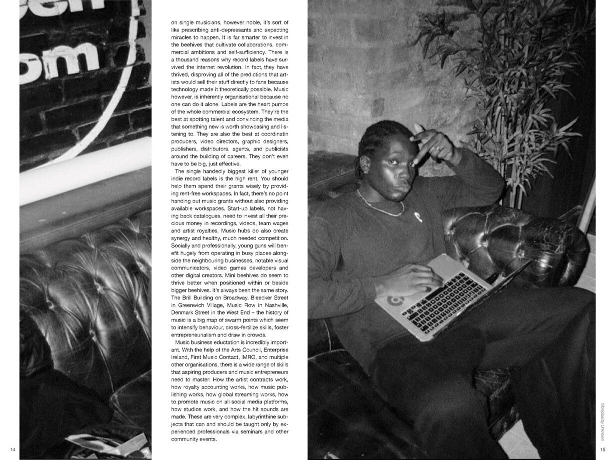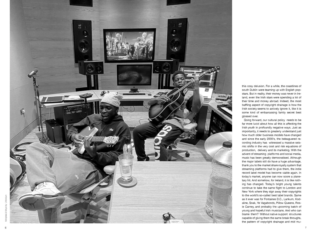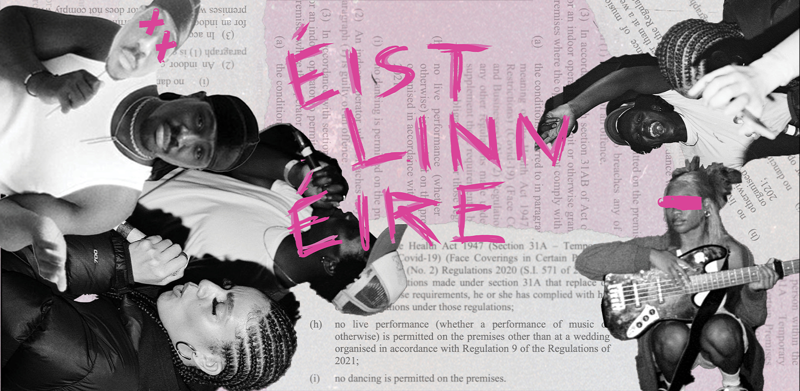 Éist Linn Éire (Listen Up Ireland) is a zine that called the government to action post the Covid-19 epidemic in regards to how poorly it treated the musicians of Ireland during the pandemic, while using the current on the rise Irish musicians. It is a mixed media project where I used imagery, text, pink pen and black pen to create texture on page post print.