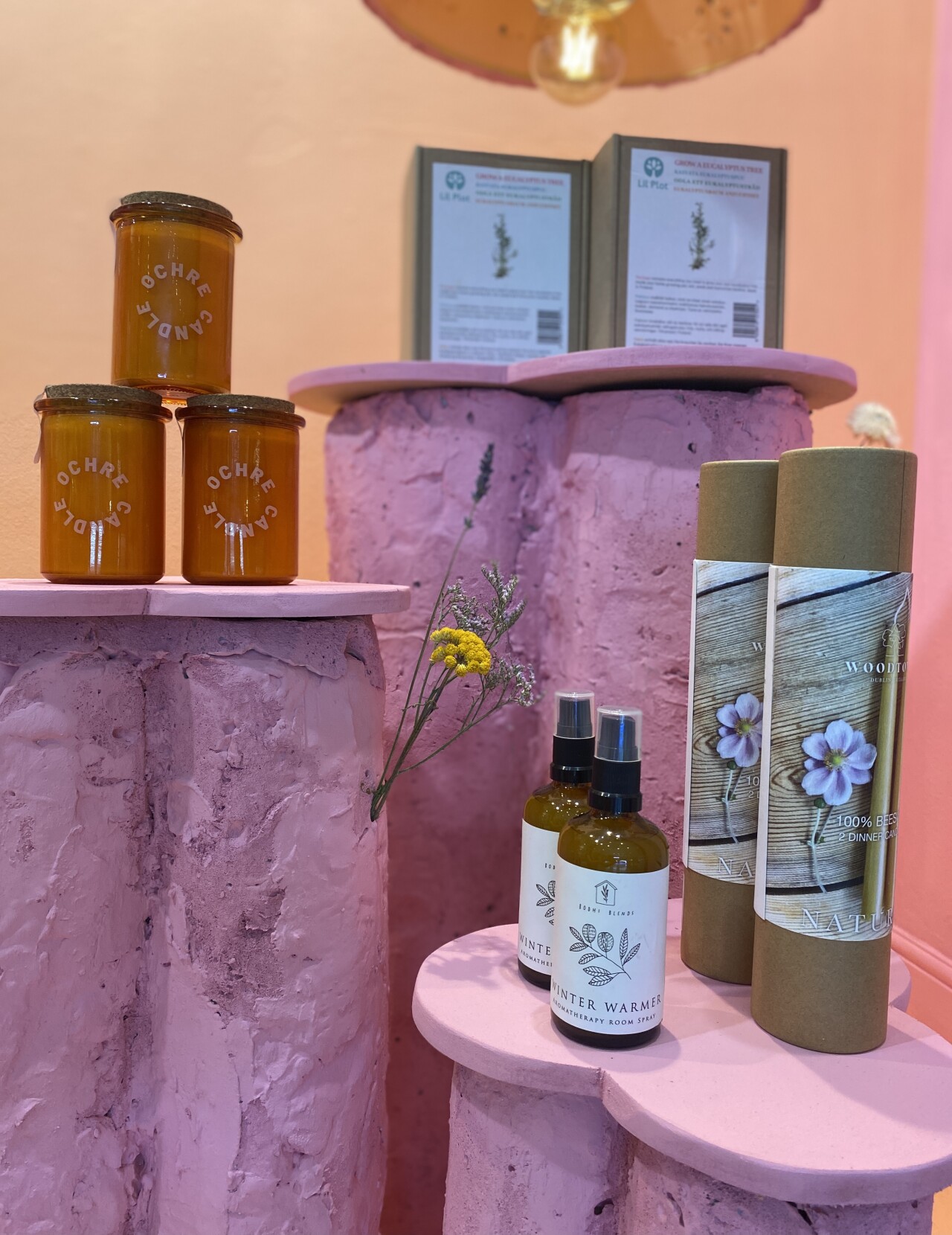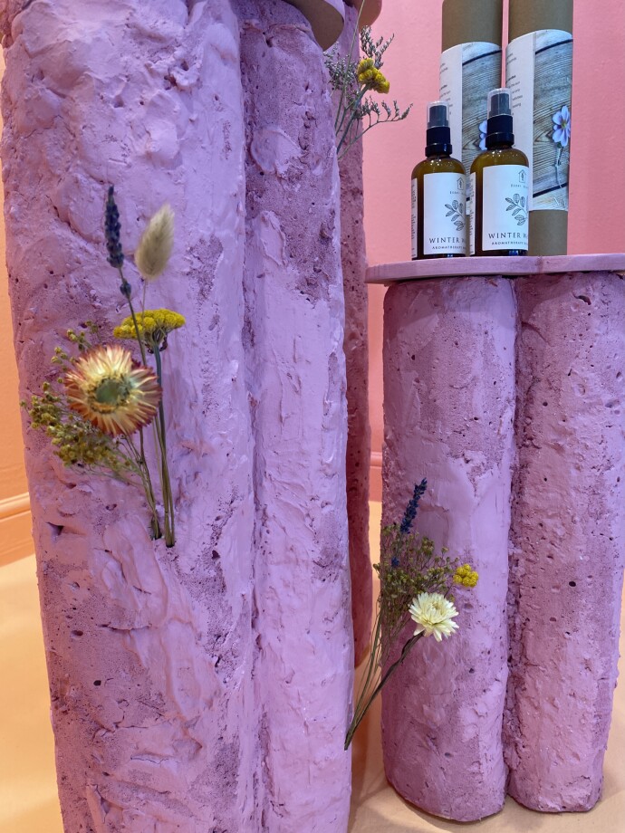 During my internship with Kilkenny Design, small circular plinths were an important element in their window concepts. I wanted my plinths to implement aspects of Kilkenny Design's brand, while having my creative twist. I was massively inspired by Acne Studios' long-term furniture designer Max Lamb and by the design company Odd Matter Studio. The curiosity for all things strange and beautiful drives their designs.