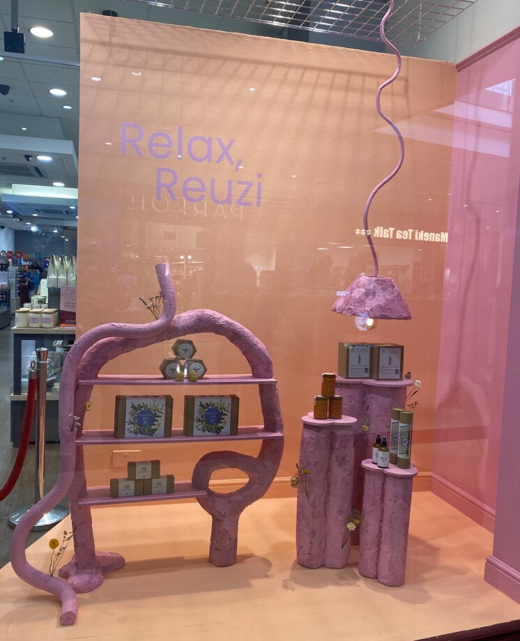 I wanted my window to be impactful to its viewers and to embody the WGSN Spring/Summer 2023 trend, 'Soul-Space.' This trend encompasses the pursuit of inner calm and the nourishment of the soul and spirit. I used a colour palette of uplifting and calming pinks and peaches.