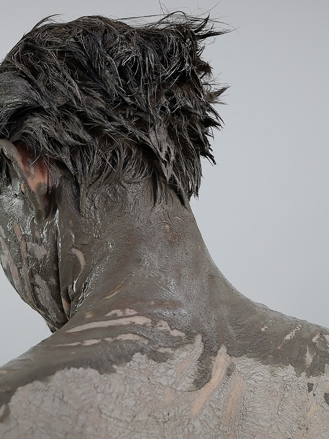 Impact Statement is a collection of work that engages with the mental, physical and social impact of abuse on the body of queer survivors. The central device of the work is a spoken word piece, formatted from the structuring of victim impact statements. There is a podium placed in the space that plays a testimony. The film works feature the receptive act of smearing clay across skin. The use of clay reflects the mechanism of traditional artmaking, reclaiming the queer body in relation to the binary bodies represented in art history. The framing of the camera is fragments of the body post-abuse. The collection of film, sound and sculptural installation explores the intimidating nature of coming forward after abuse, creating dialogues around the structures of the judicial system in Ireland. Through the format of the self-portrait the work draws a line between the public and private spaces of physical, sexual and emotional abuse and its aftermath.