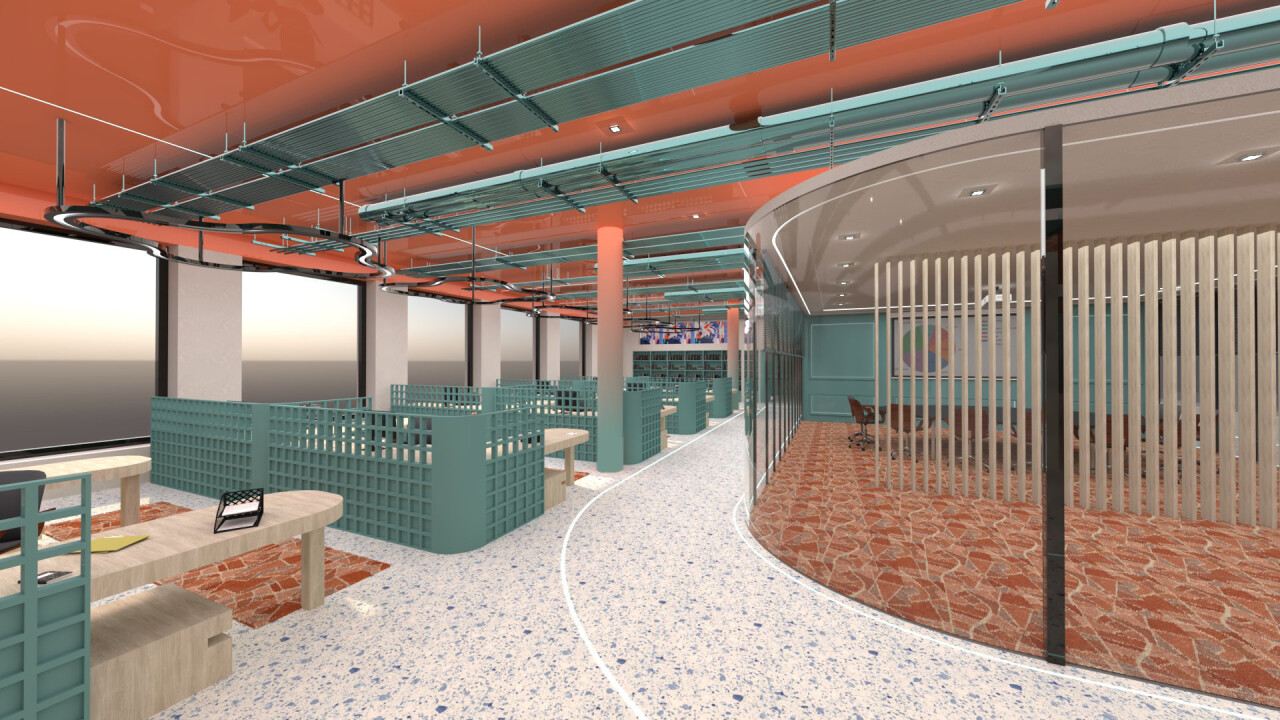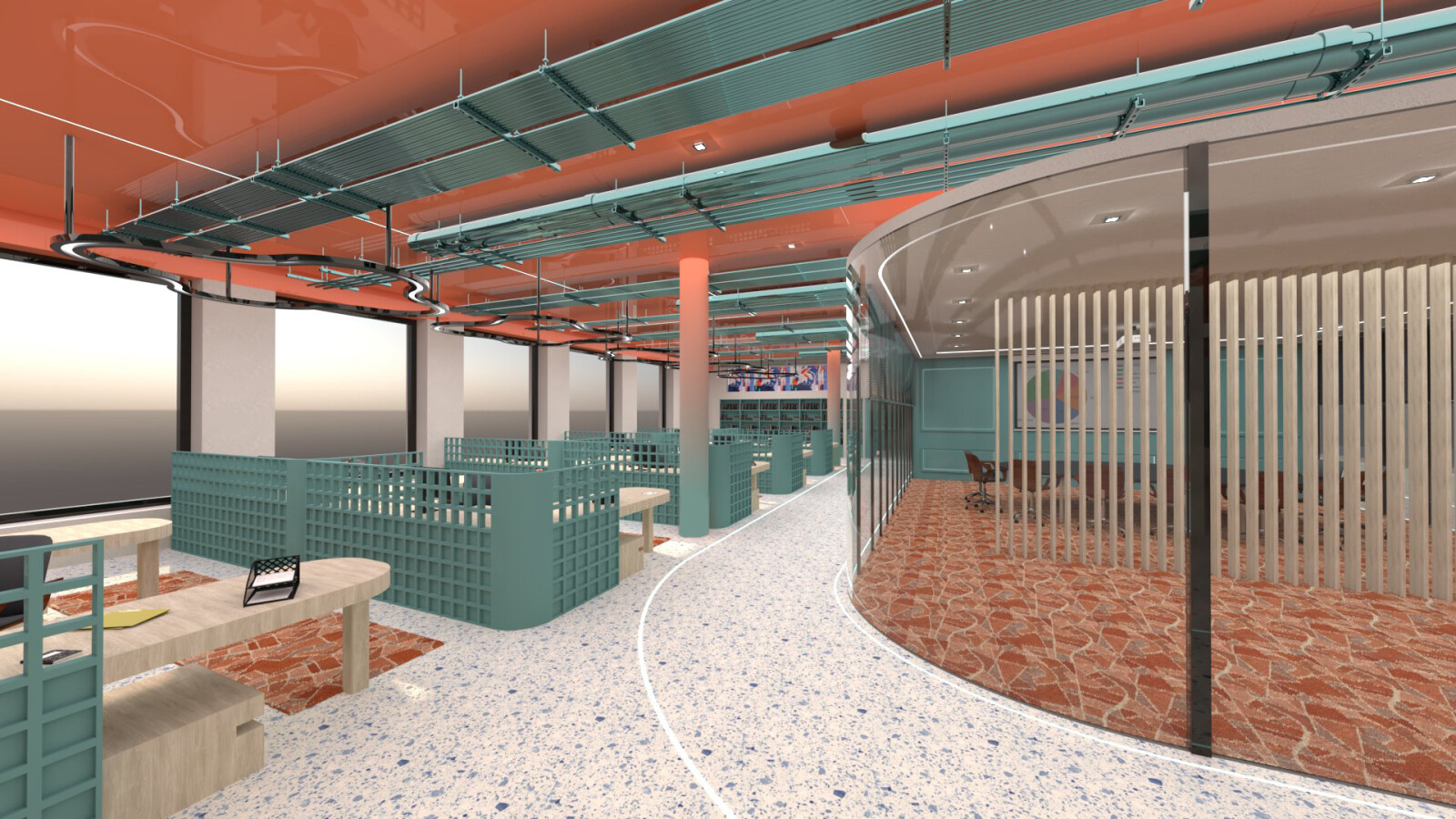 From the welcoming lobby and cosy cafe to versatile event areas and interactive classrooms, each floor invites exploration and collaboration. The fourth level features offices, meeting rooms, and a communal canteen, while a rooftop bar provides stunning city views. Bold colours, innovative signage, and immersive installations enhance the vibrant atmosphere throughout. Whether attending an event, exploring an exhibition, or enjoying a coffee, our hub is a lively destination where creativity thrives and connections flourish.