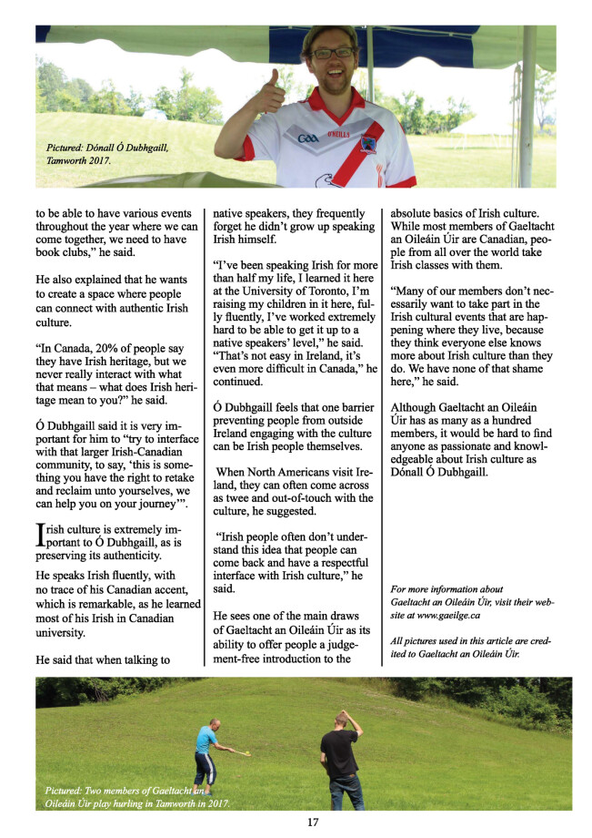 Ó Dubhgaill said it is very important for him to “trt to interface with that larger Irish-Canadian community, to say ‘this is something you have the right to retake and relearn unto yourselves, we can help you on your journey.”