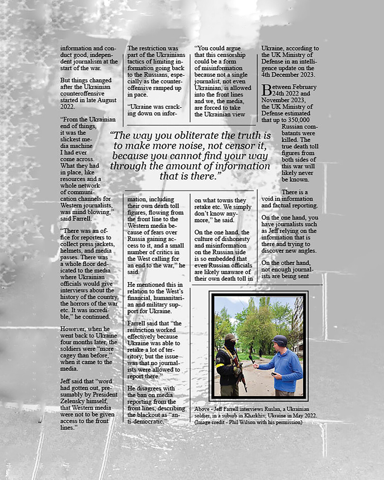 Journalists, like Jeff Farrell, initially had relatively unrestricted access to information in Ukraine but encountered heightened restrictions as the conflict escalated. Ukrainian authorities limited media access to prevent leakage of sensitive information to Russia, a move that some critics, such as Farrel himself, viewed as “a form of misinformation”, stifling transparency and accountability.