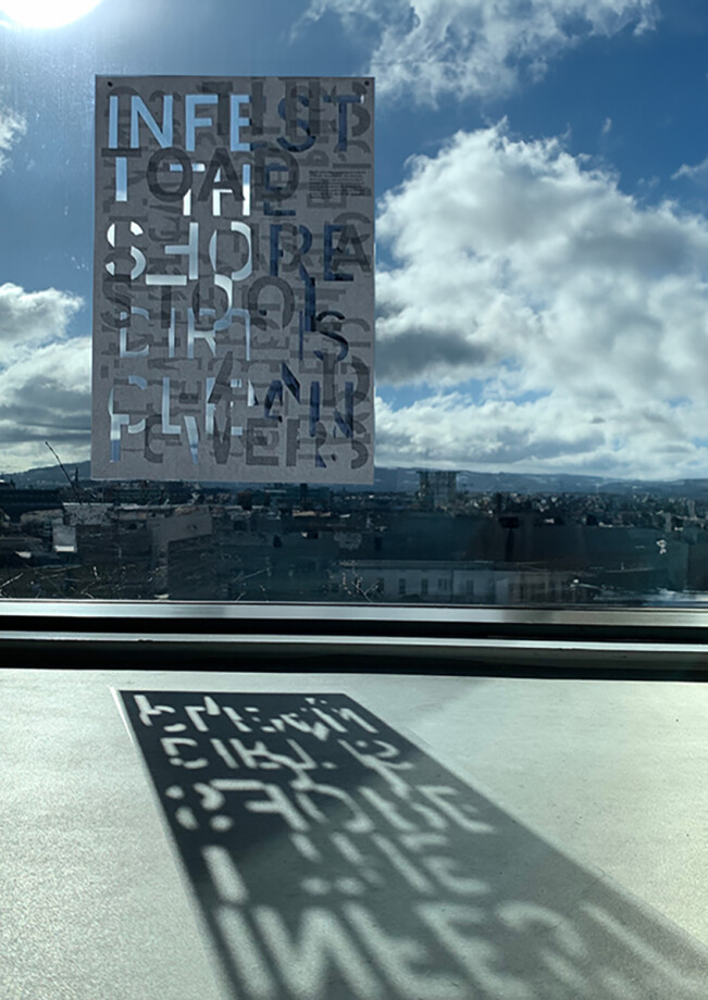 The Our Nuclear Shadow campaign typographically communicates the enduring negative effects of the radioactive waste generated by nuclear power plants. Seascale, a neighbouring town continually impacted by the Sellafield nuclear power plant serves as a focal point, sparking a wider dialogue about its negative environmental legacy. The explicit aim is to garner attention for the concerns of the residents of Seascale as captured by local poet, Norman Nicholson. Sellafield is currently being decommissioned, leaving behind high-level nuclear waste for many generations to contend with. Utilising abstract typographic elements and immersive audio-visual components, the campaign embodies a cautionary message, warning of the alarming permanence of radioactivity stemming from nuclear power plants. The visuals represent the nuclear shadow we leave on the planet, encapsulating the notion of the life cycle of a nuclear power plant and its radioactive effects.