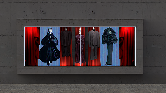 If I were the Creative Director for Balenciaga, here is a Sketchup model of what I would design as a flagship store. My design is a juxtaposition of the old versus new Balenciaga. The background showcases some of Balenciaga's first designs in the 1950s, displayed on light-up TV screens on the back wall. These designs, while classic, are just the beginning. The A/W collection is displayed on hanging modern industrial-style mannequin busts against red velvet curtains, capturing Balenciaga's surprising design ideas and showcasing the brand's evolution. These new designs, with their innovative approach, are sure to captivate and intrigue our audience.