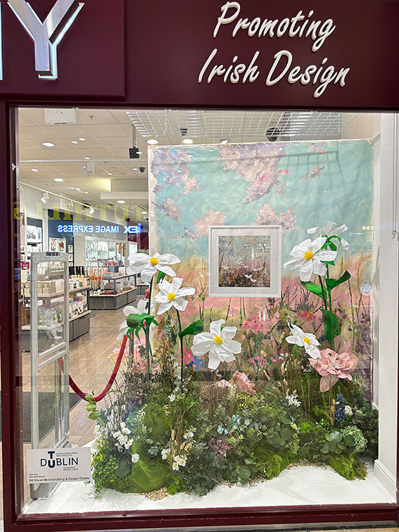 My final-year window installation, "Blooming Nature," was designed for Kilkenny Design. The design was based on an Irish artist, Karen Wilson. Celebrating the creation of art and design, the design is also inspired by "Creative Confidence," the WGSN trend. To embrace and expand the focus of nature within the artwork.